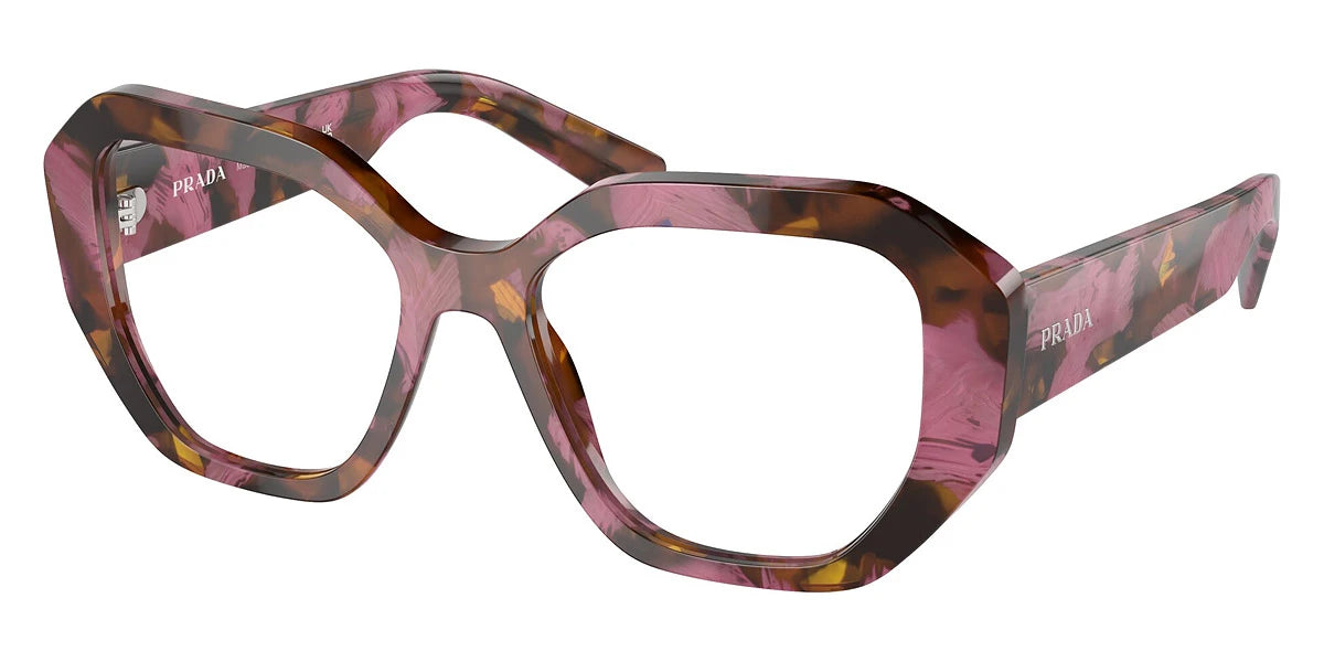 PR A07VF Eyeglasses by Prada. The irregular shape design feature a full rim acetate frame. This model is available in four different color combinations and sizes. Prada is a synonym for style. It is one of the few brands which anticipates aesthetic trends and dictates its own rules in the fashion market.The brand stands apart with all products from clothing to eyewear which are always in vogue. Prada eyeglasses are elegant, fashion-forward and impossibly chic. The brand annually pleases its fans with new eyewear collections which highlight the personality and style of the prominent fashion house. Millions of fashionistas dream of Prada eyeglasses featuring graceful shapes, excellent fit and comfortable wearing.