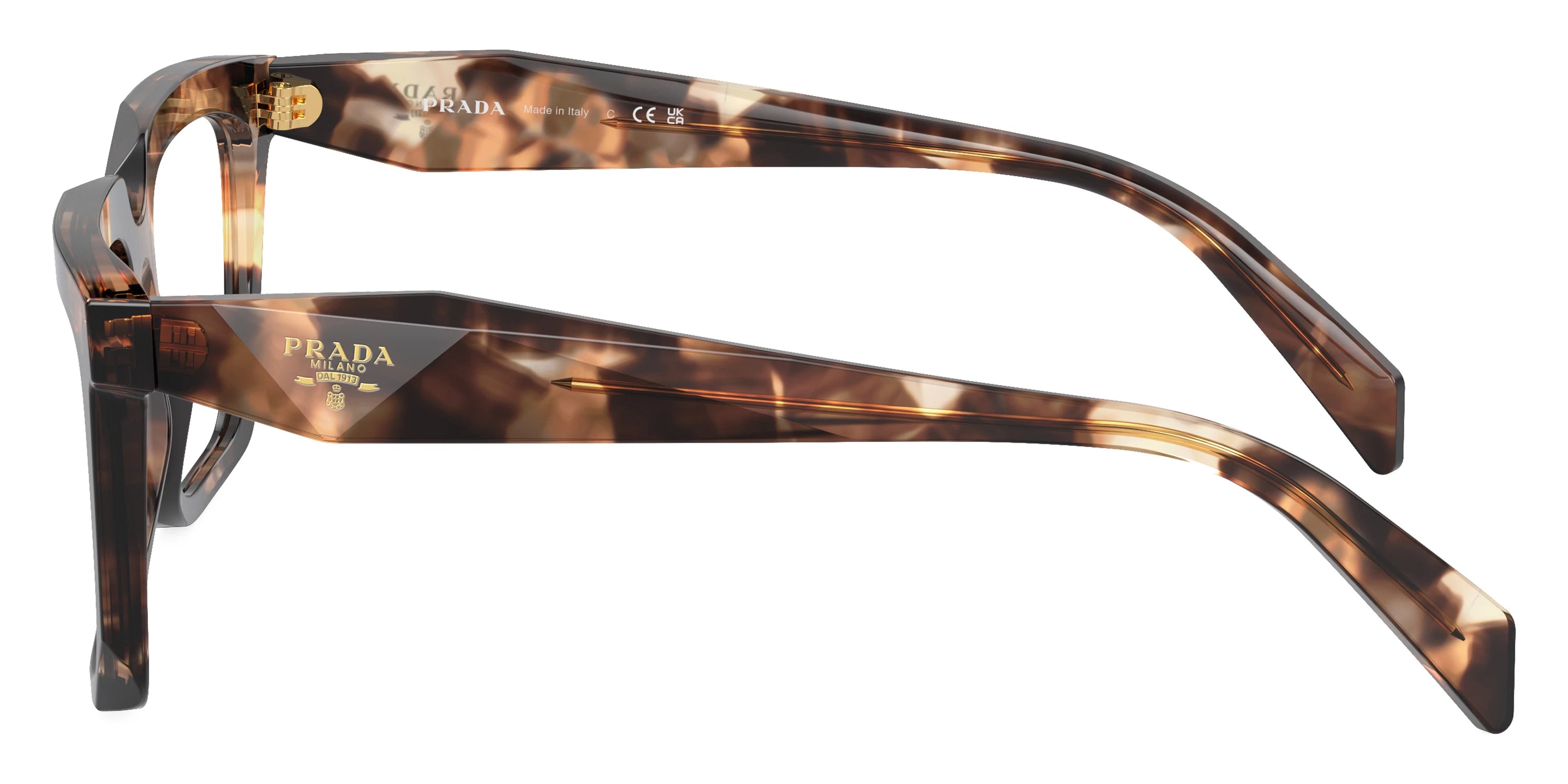 Caramel Tortoise (14P1O1) Eyeglasses (Symbole PR A19V 14P1O1 52) by Prada. Size: 52-18-145, Shape: Rectangle, Material: Acetate.
