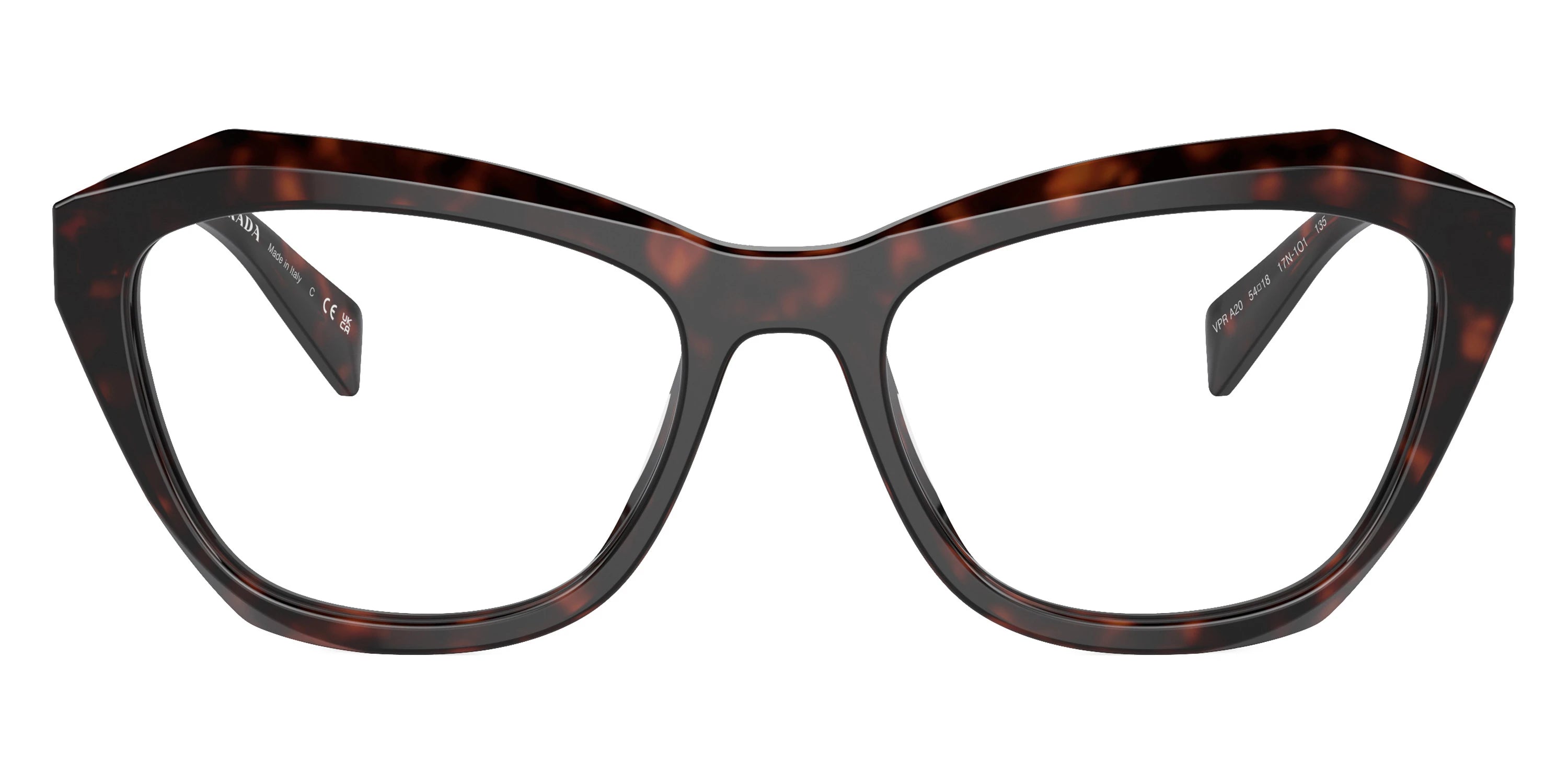 PR A20V Eyeglasses by Prada. The butterfly shape design feature a full rim acetate frame. This model is available in eight different color combinations and sizes. Prada is a synonym for style. It is one of the few brands which anticipates aesthetic trends and dictates its own rules in the fashion market. The brand stands apart with all products from clothing to eyewear which are always in vogue. Prada eyeglasses are elegant, fashion-forward and impossibly chic. The brand annually pleases its fans with new eyewear collections which highlight the personality and style of the prominent fashion house. Millions of fashionistas dream of Prada eyeglasses featuring graceful shapes, excellent fit and comfortable wearing.
