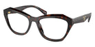 Caramel Tortoise (14P1O1) Eyeglasses (PR A20V 14P1O1 54) by Prada. Size: 54-18-135, Shape: Butterfly, Material: Acetate.