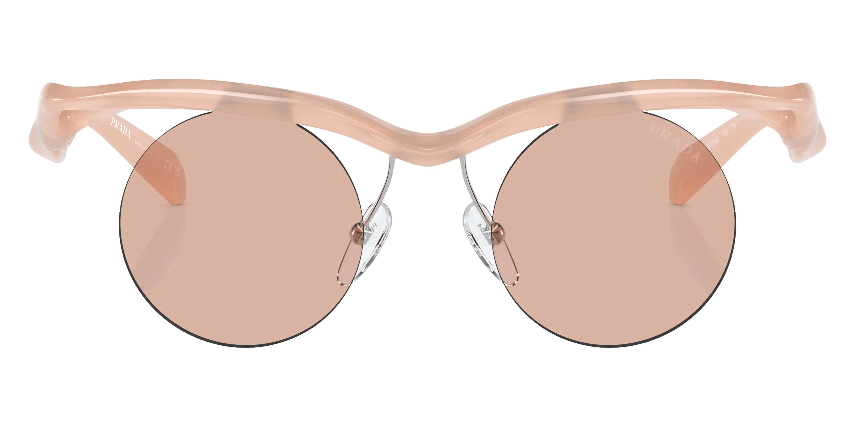 Opal Peach (12S0B8) Sunglasses with Light Brown lenses (PR A24S 12S0B8 43) by Prada. Size: 43-22-135, Shape: Round, Material: Injected.