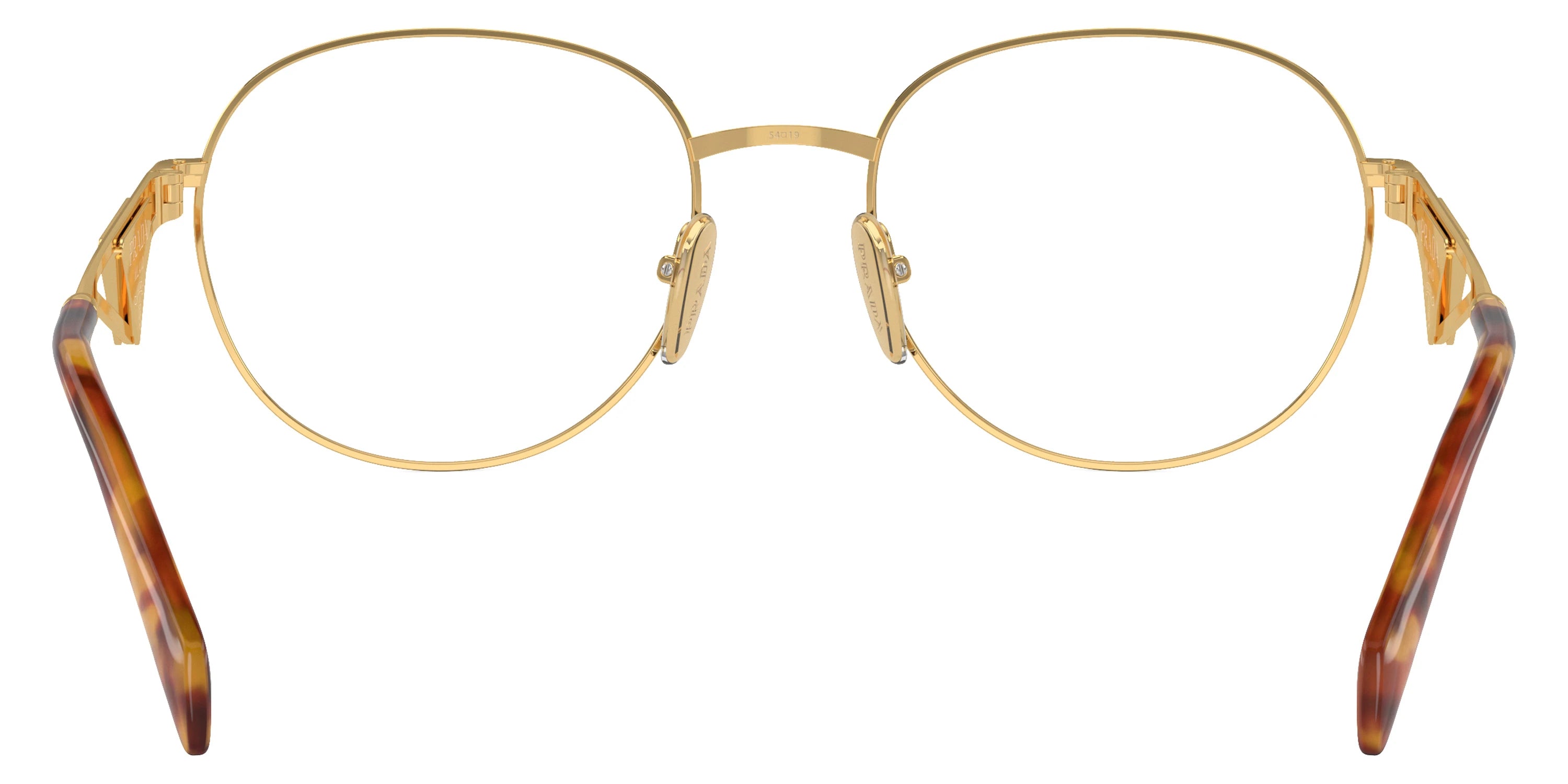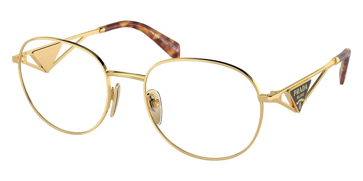 PR A50V Eyeglasses by Prada. The round shape design feature a full rim metal frame. This model is available in eight different color combinations and sizes. Prada is a synonym for style. It is one of the few brands which anticipates aesthetic trends and dictates its own rules in the fashion market.The brand stands apart with all products from clothing to eyewear which are always in vogue. Prada eyeglasses are elegant, fashion-forward and impossibly chic. The brand annually pleases its fans with new eyewear collections which highlight the personality and style of the prominent fashion house. Millions of fashionistas dream of Prada eyeglasses featuring graceful shapes, excellent fit and comfortable wearing.