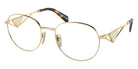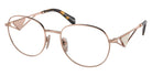 Black (1AB1O1) Eyeglasses (PR A50V 1AB1O1 52) by Prada. Size: 52-19-140, Shape: Round, Material: Metal.