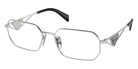 Silver (1BC1O1) Eyeglasses (PR A53V 1BC1O1 56) by Prada. Size: 56-17-140, Shape: Irregular, Material: Metal.