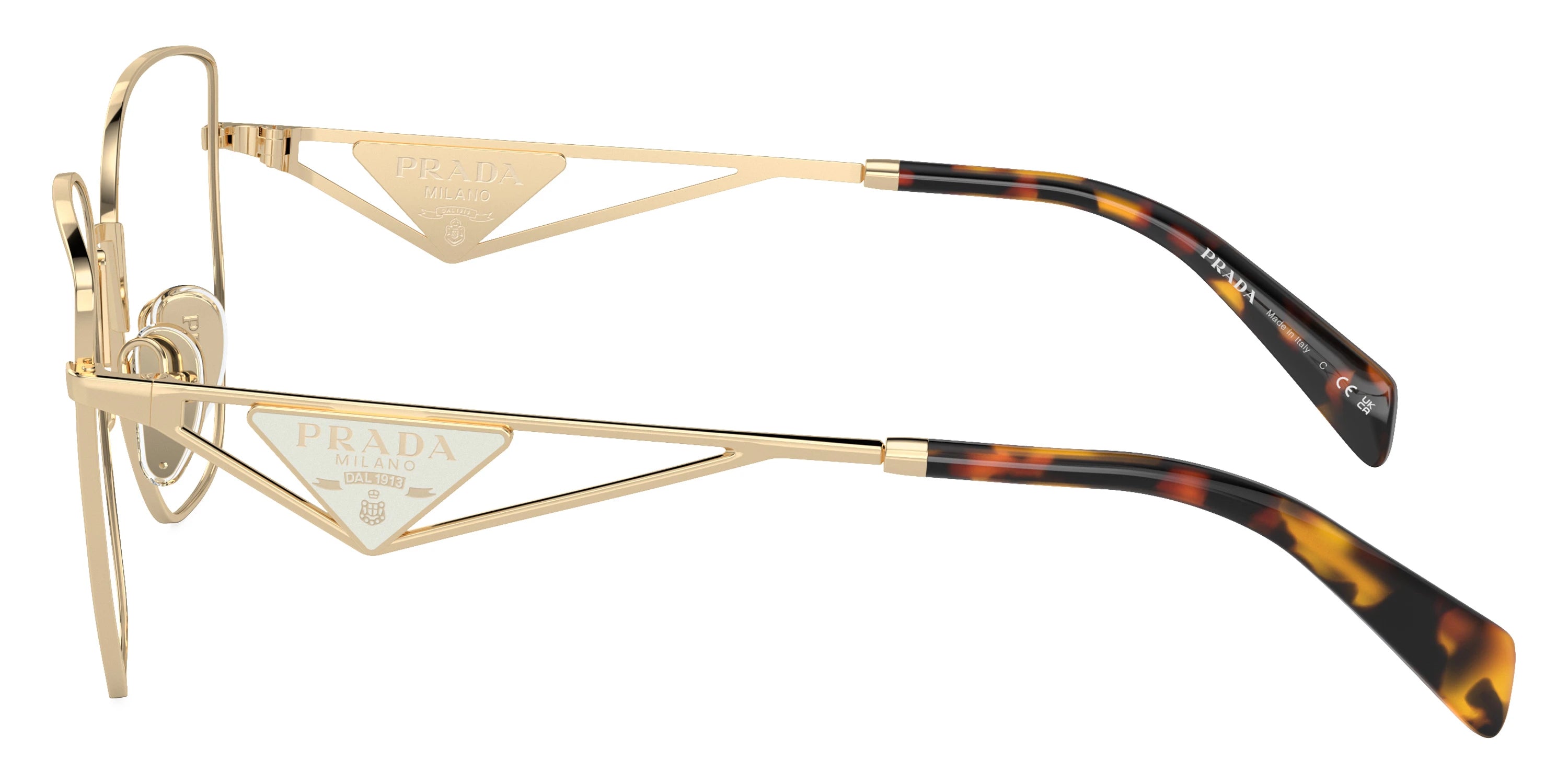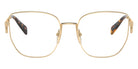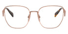 Gold (5AK1O1) Eyeglasses (PR A54VD 5AK1O1 55) by Prada. Size: 55-18-140, Shape: Butterfly, Material: Steel and Metal.