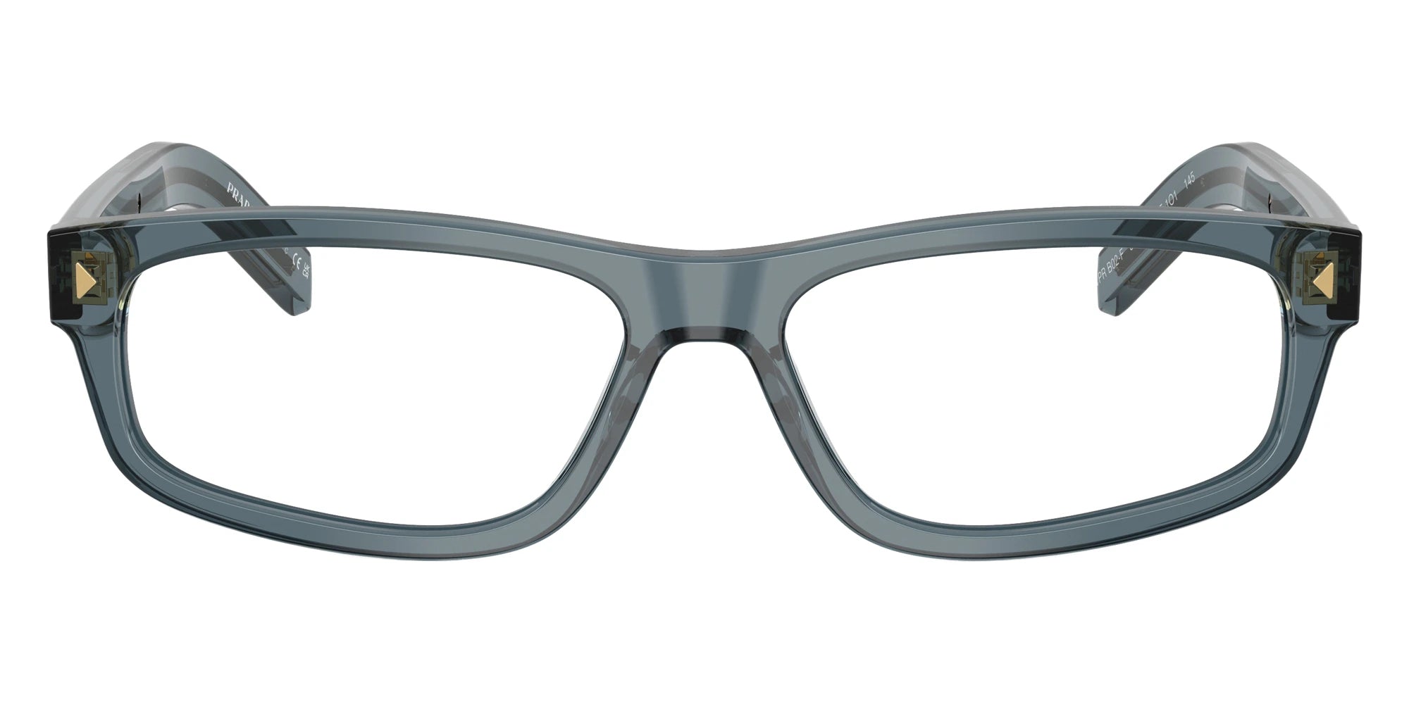 Transparent Ocean/Silver (17T1O1) Eyeglasses (PR B02VF 17T1O1 58) by Prada. Size: 58-14-145, Shape: Rectangle, Material: Acetate.