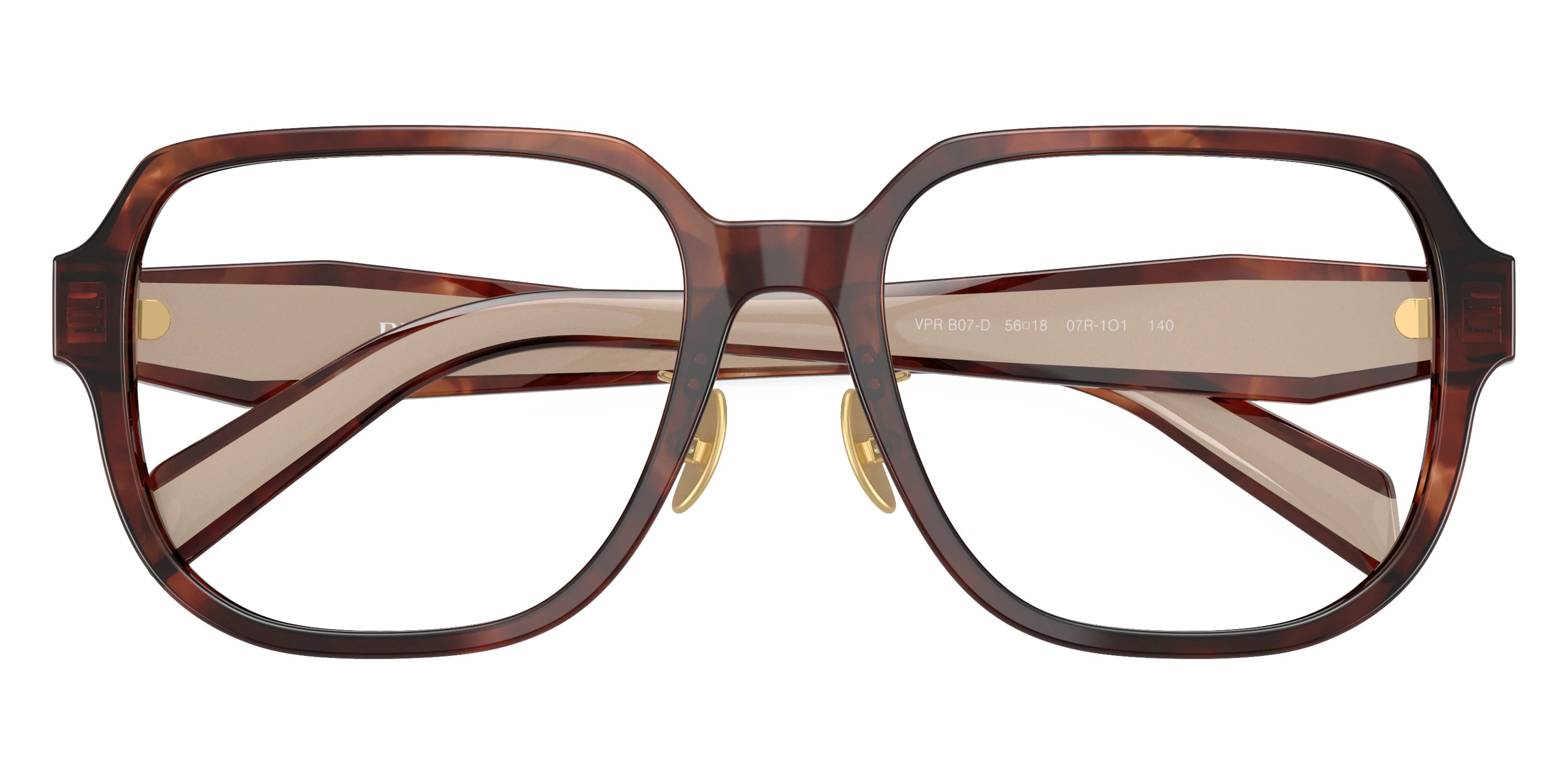 Havana Caramel/Beige (07R1O1) Eyeglasses (PR B07VD 07R1O1 56) by Prada. Size: 56-18-140, Shape: Square, Material: Acetate.