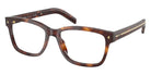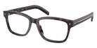 Transparent Brown/Gunmetal (18T1O1) Eyeglasses (PR B10V 18T1O1 53) by Prada. Size: 53-17-150, Shape: Rectangle, Material: Acetate.