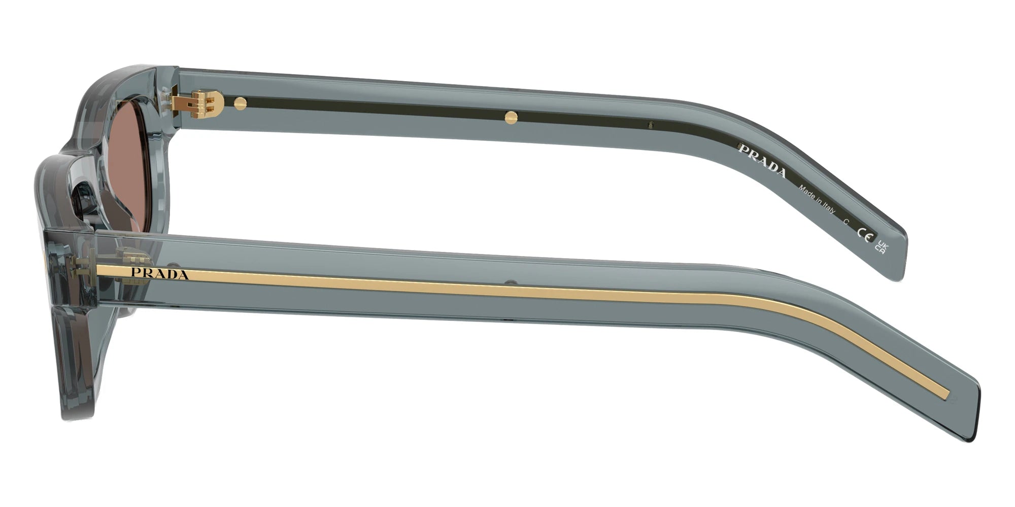 Transparent Terra (18T70F) Sunglasses with Dark Brown lenses (PR B11SF 18T70F 57) by Prada. Size: 57-15-145, Shape: Rectangle, Material: Acetate.