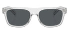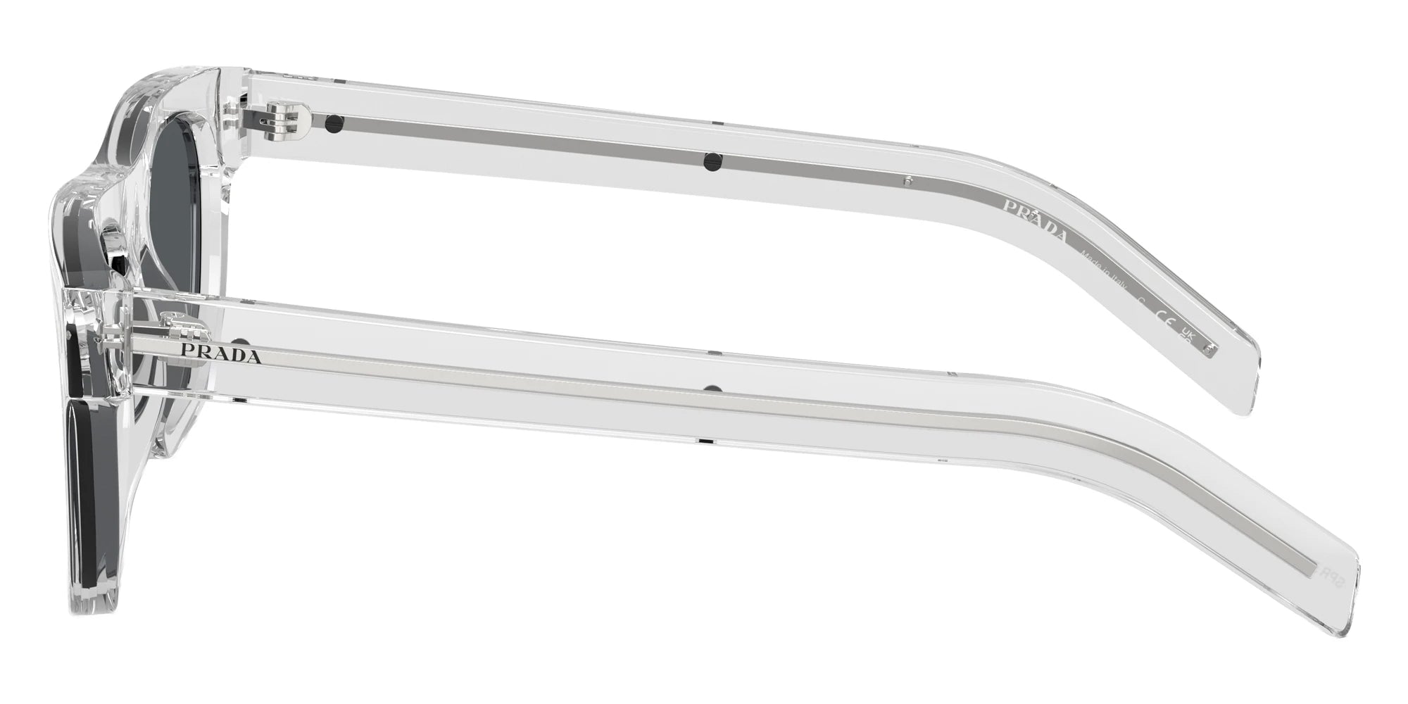 Transparent Gray (12R07T) Sunglasses with Dark Blue lenses (PR B12SF 12R07T 55) by Prada. Size: 55-19-145, Shape: Square, Material: Acetate.