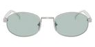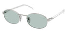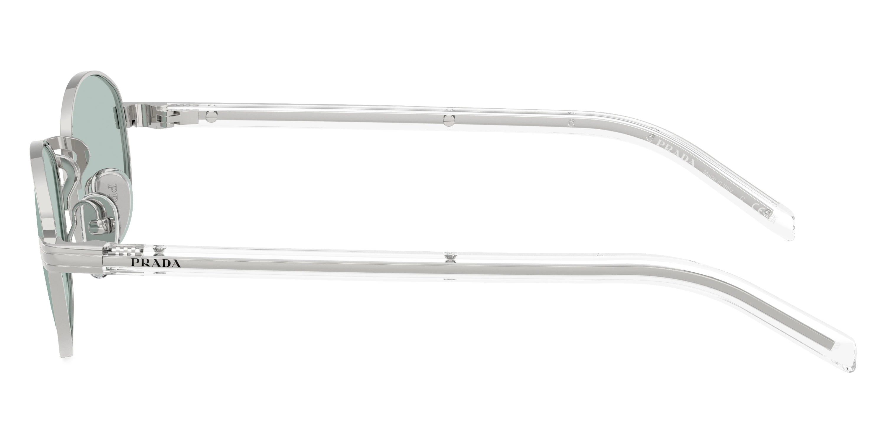 Silver/Transparent Crystal (1BC40N) Sunglasses with Azure lenses (PR B53S 1BC40N 49) by Prada. Size: 49-21-145, Shape: Oval, Material: Steel and Acetate.