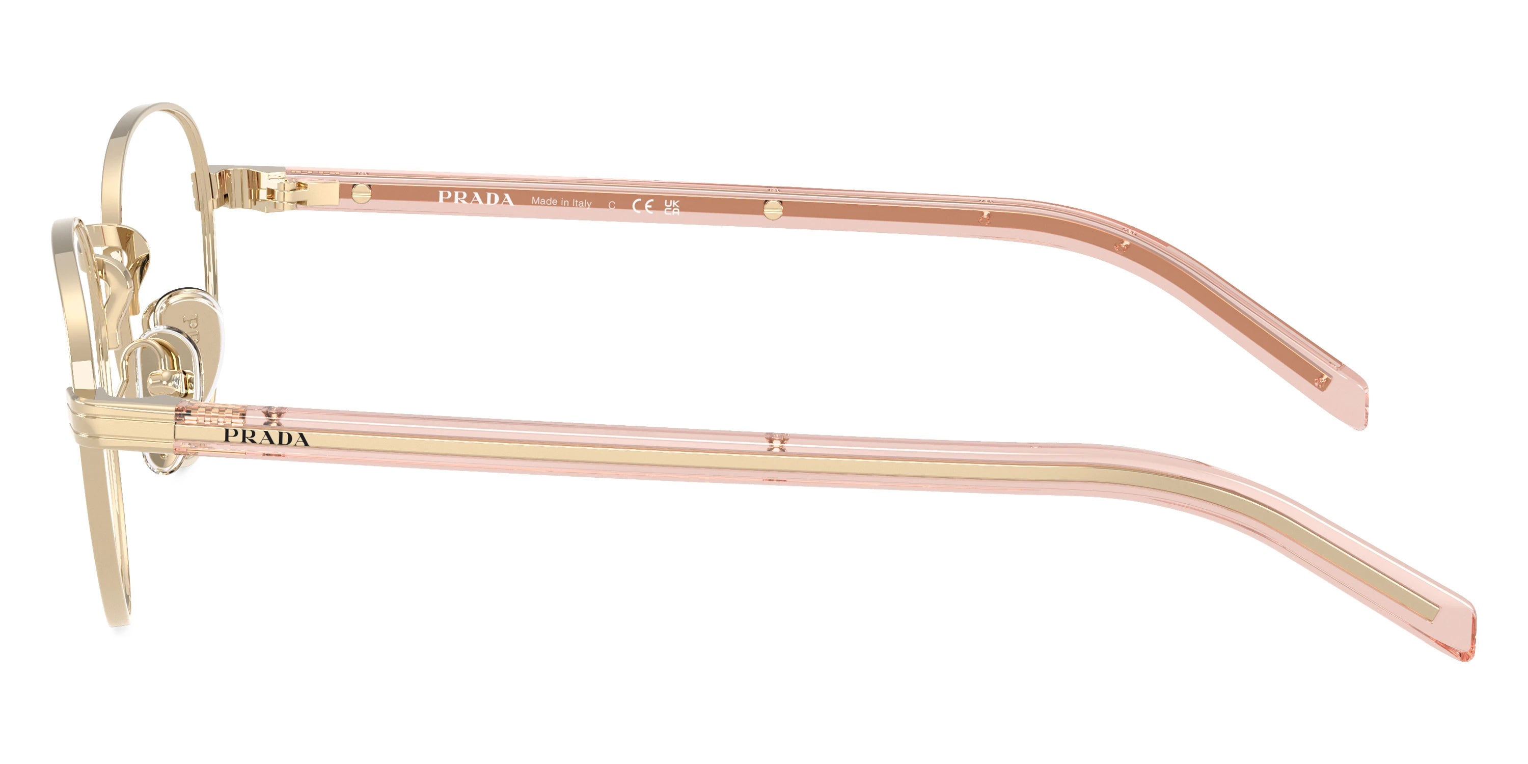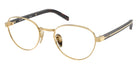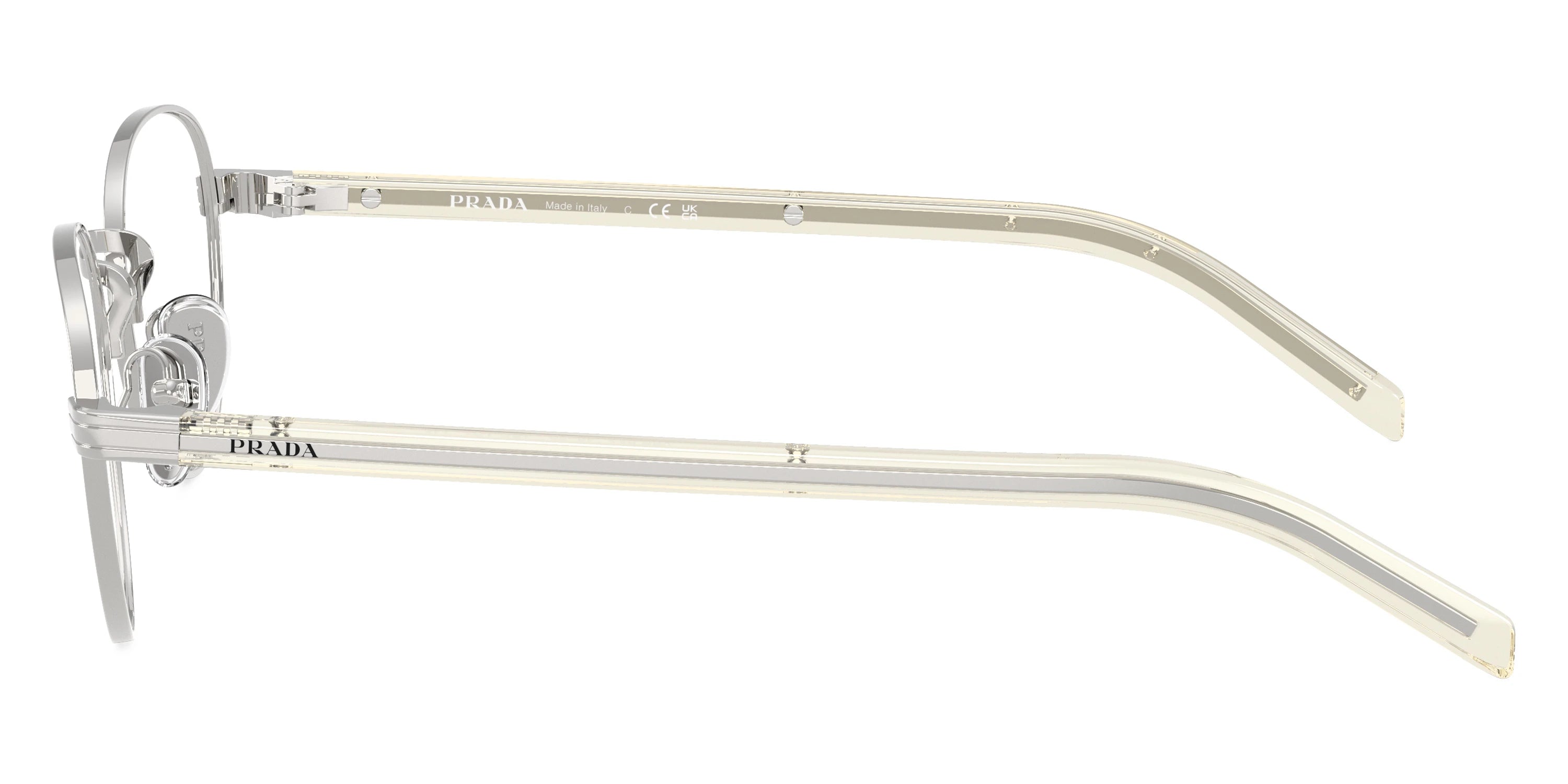 Silver/Transparent Champagne (1BC1O1) Eyeglasses (PR B53V 1BC1O1 49) by Prada. Size: 49-20-145, Shape: Round, Material: Steel and Acetate.