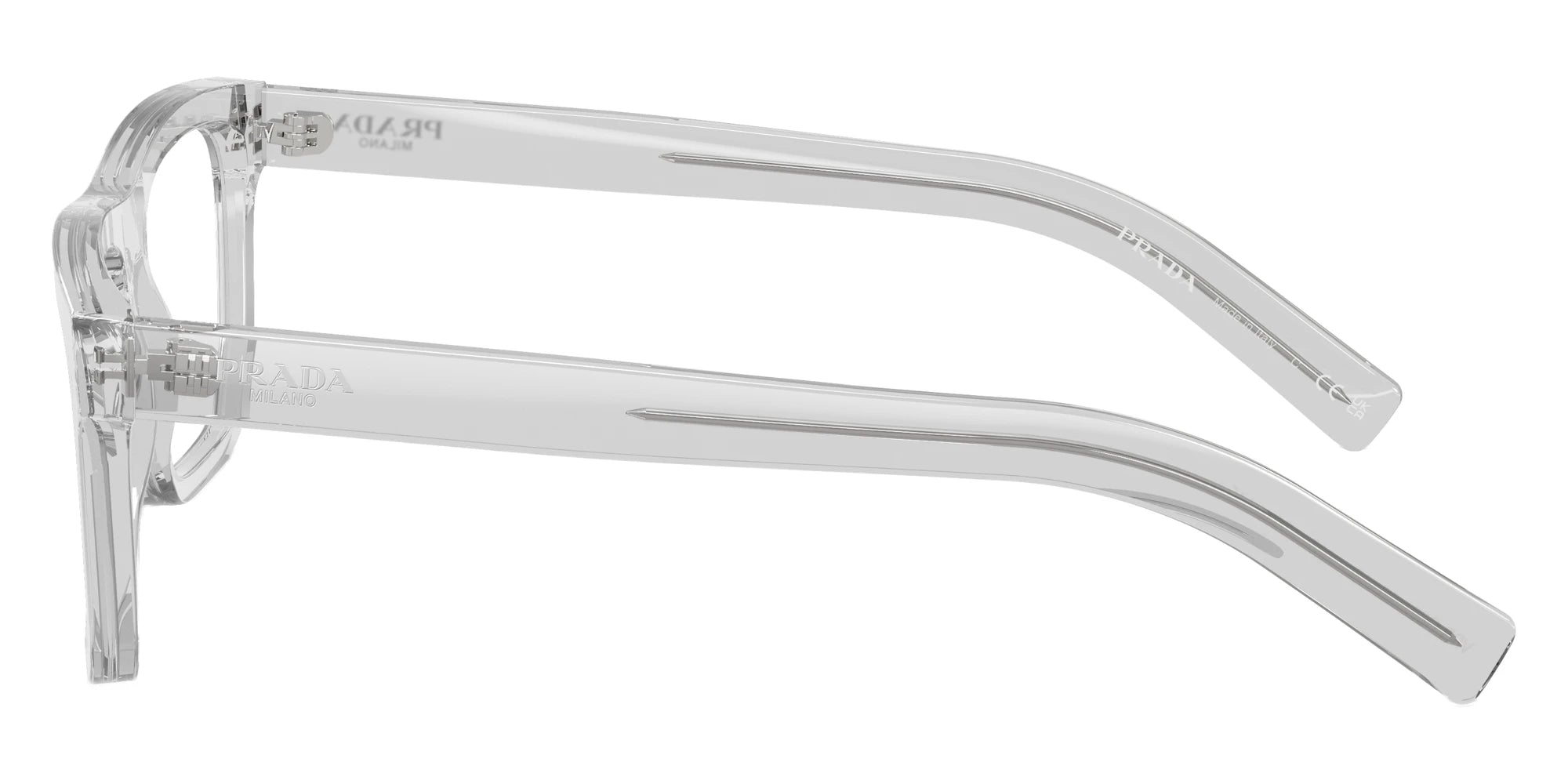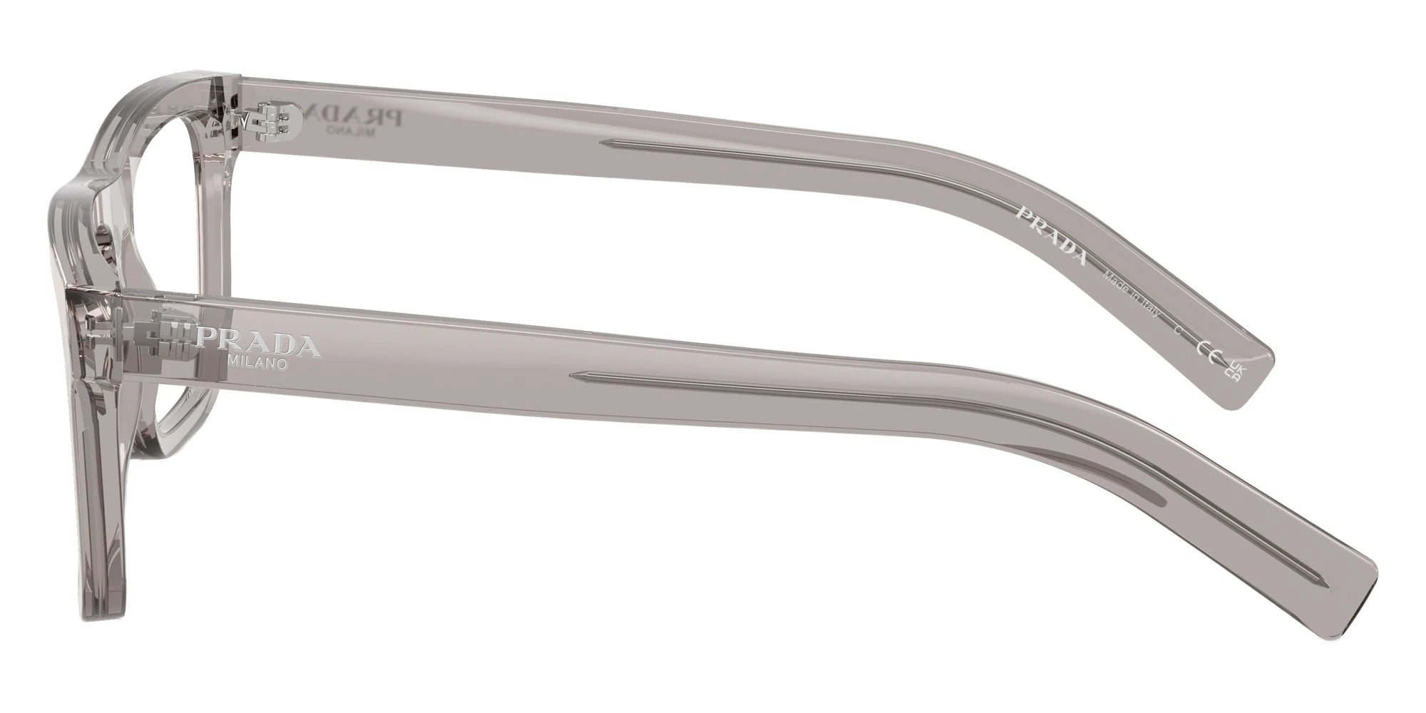 Crystal Gray (17P1O1) Eyeglasses (PR C03V 17P1O1 53) by Prada. Size: 53-19-145, Shape: Square, Material: Acetate.