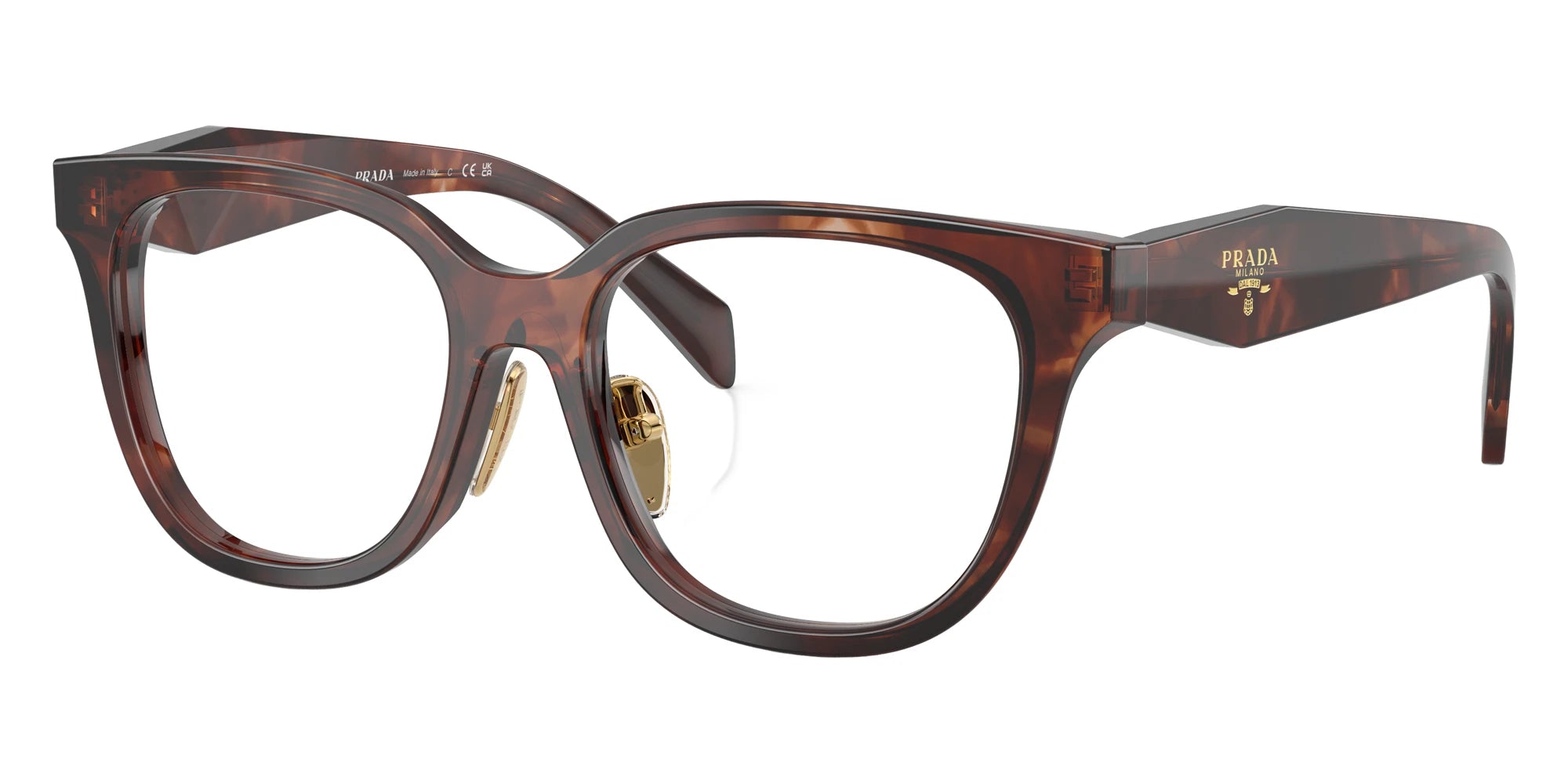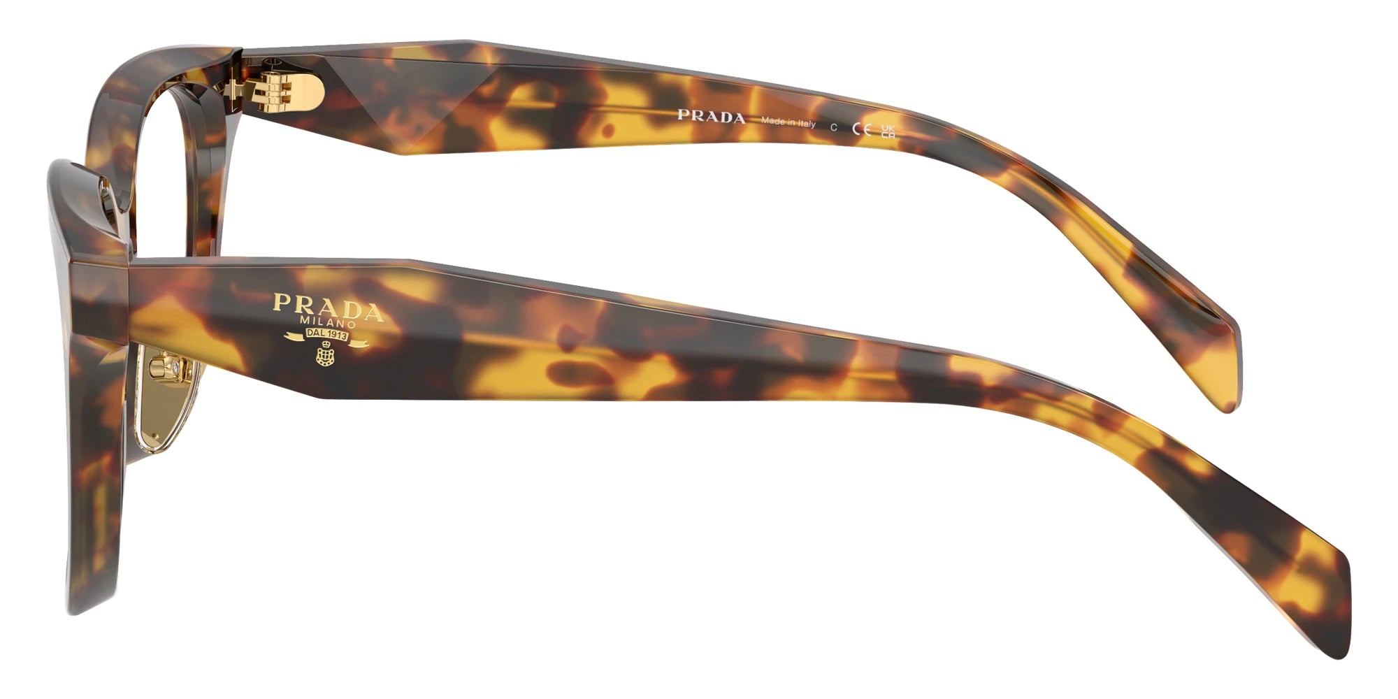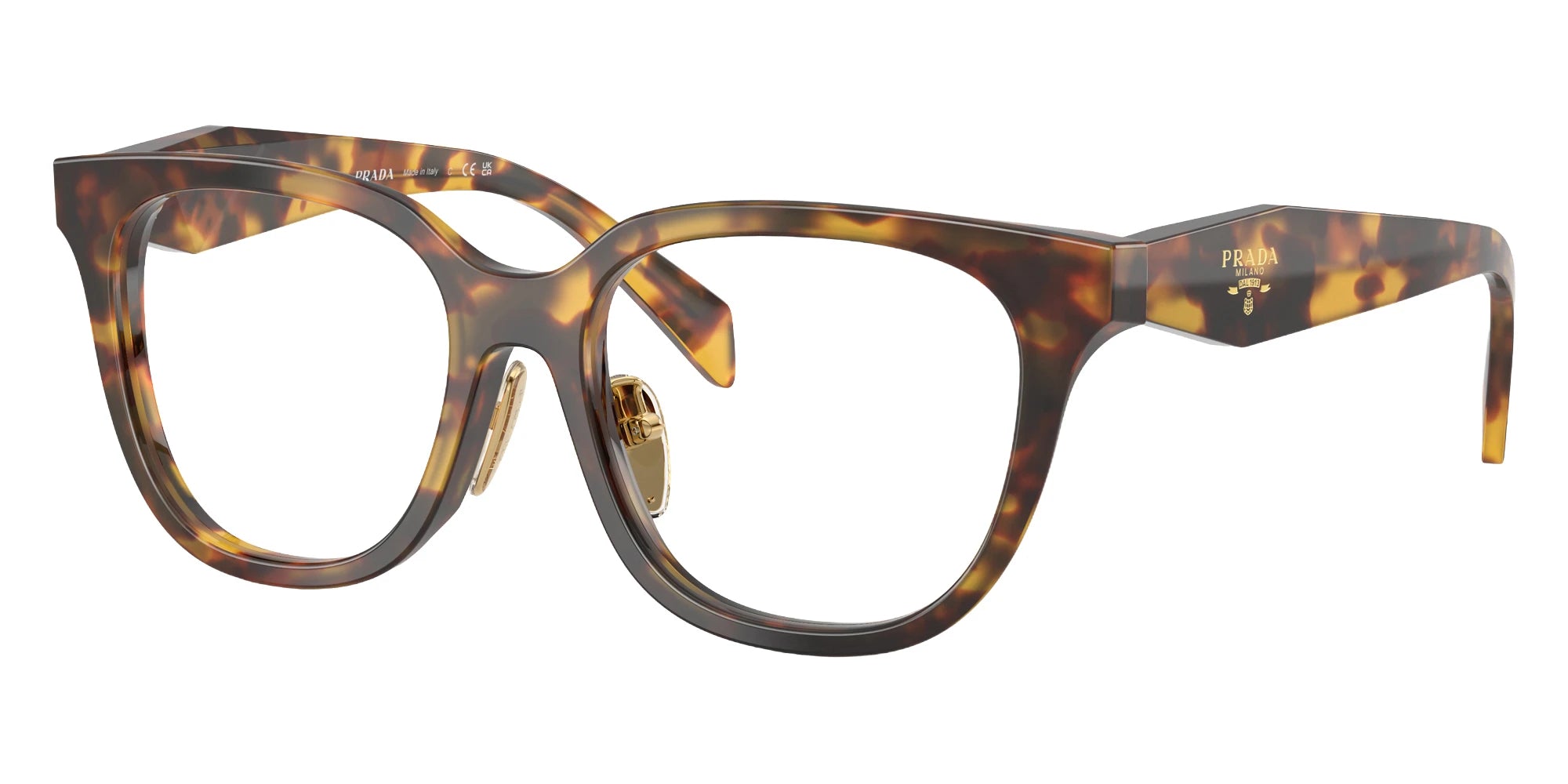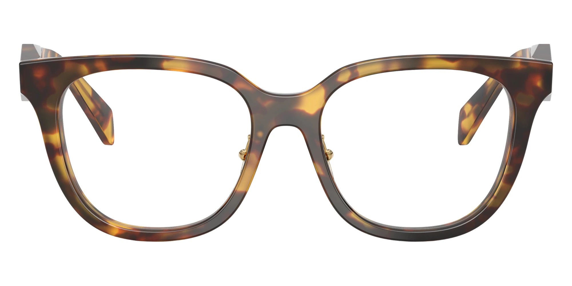 Honey Tortoise (14L1O1) Eyeglasses (PR C11VF 14L1O1 53) by Prada. Size: 53-17-145, Shape: Butterfly, Material: Acetate.