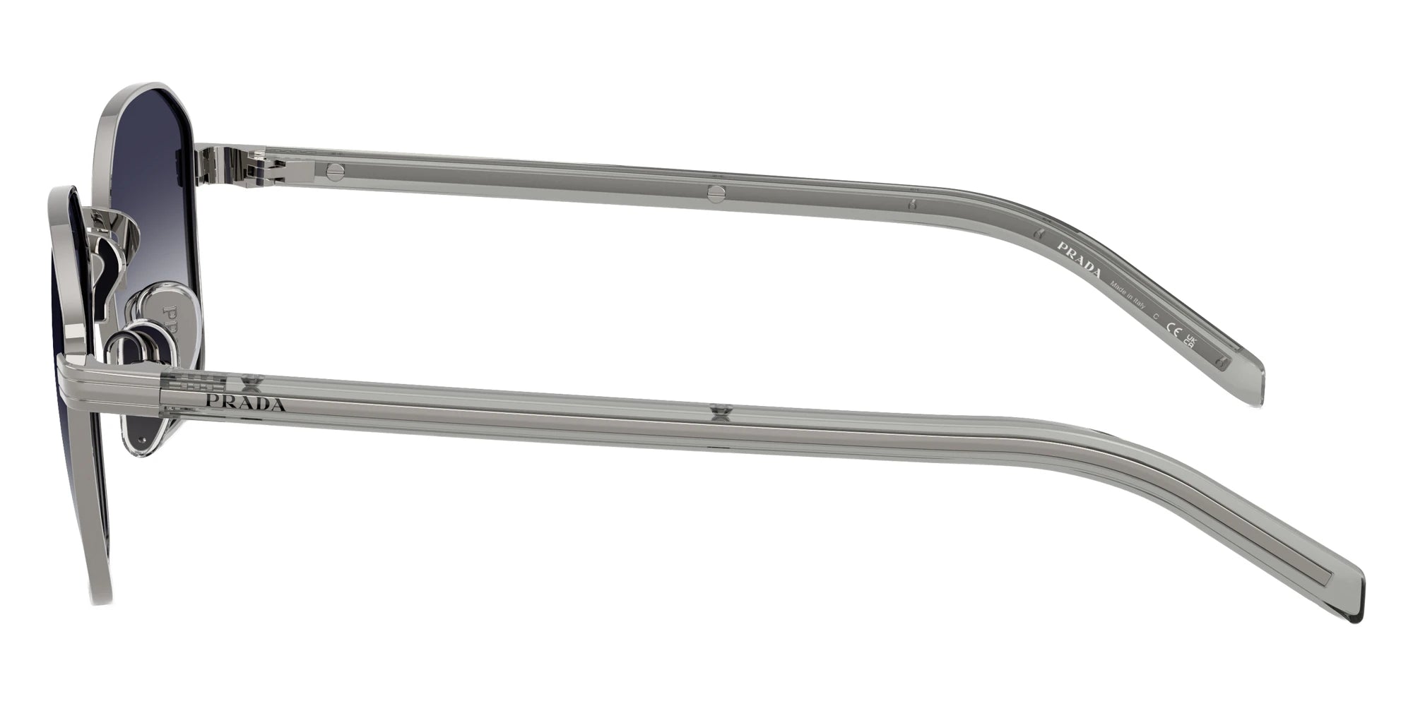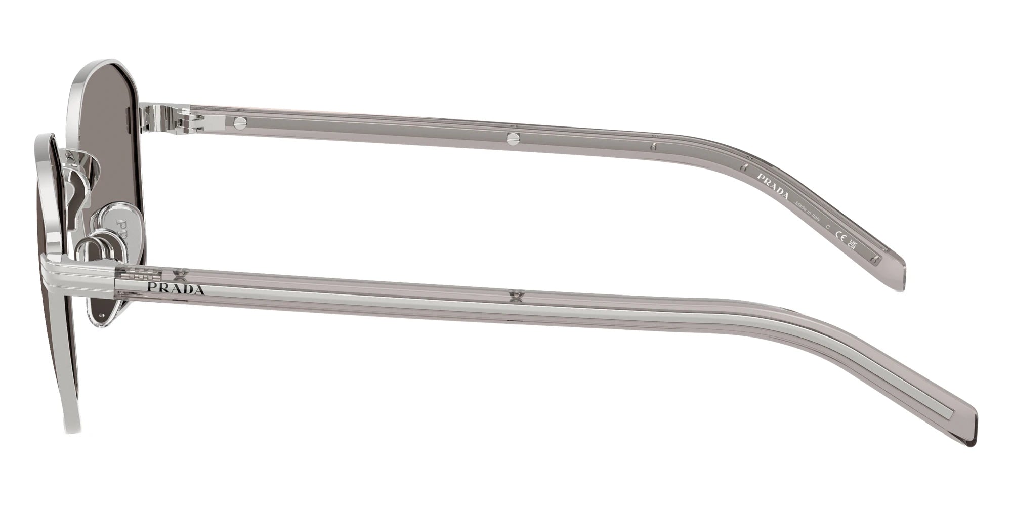 Silver (1BC80Q) Sunglasses with Dark Gray lenses (PR C50S 1BC80Q 51) by Prada. Size: 51-20-145, Shape: Square, Material: Steel and Acetate.
