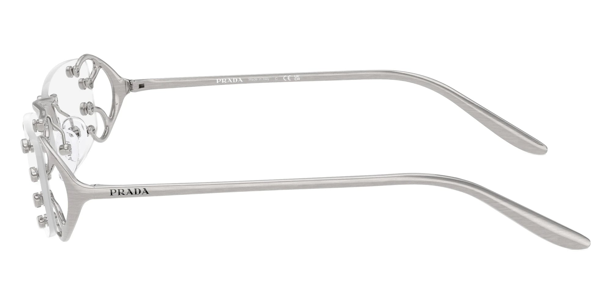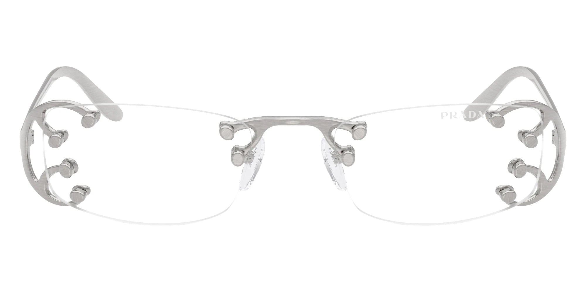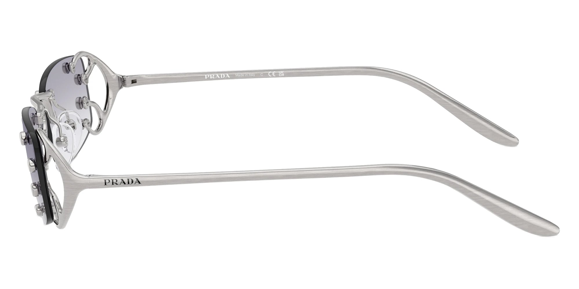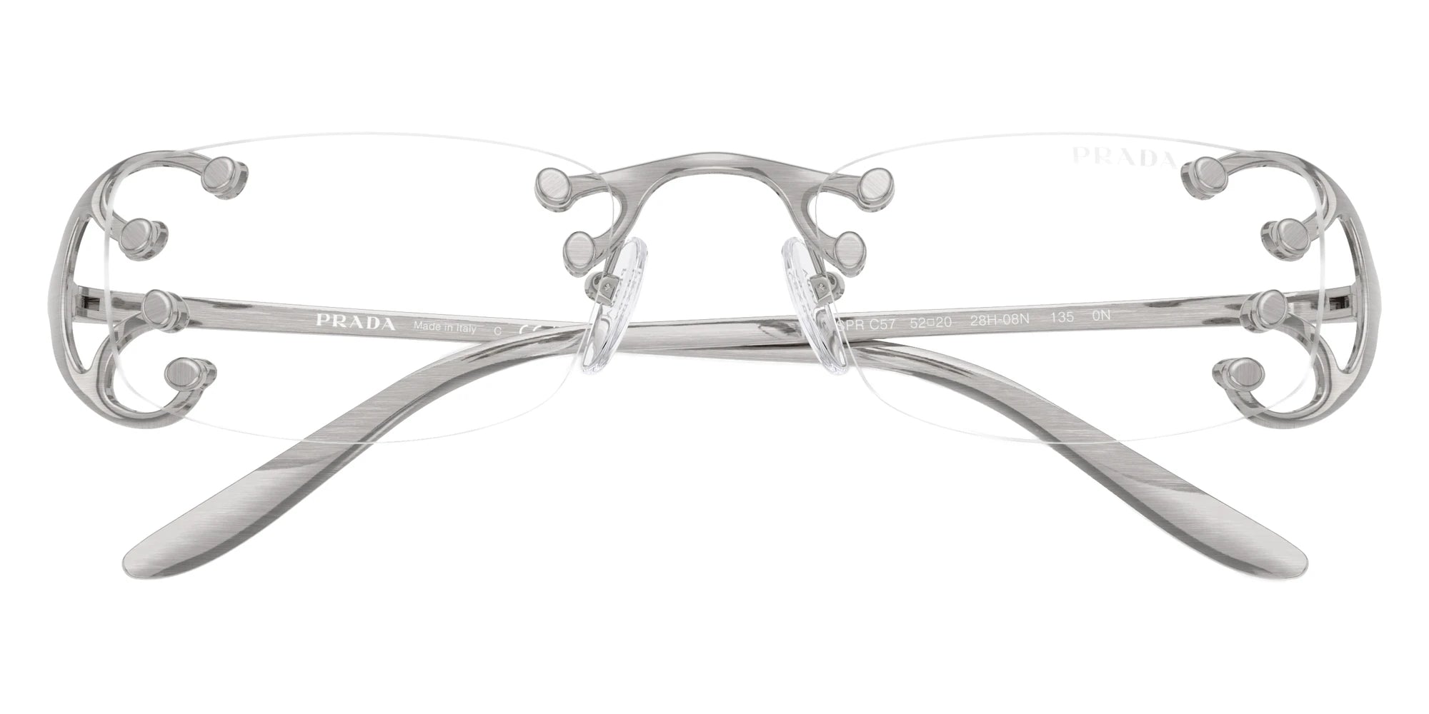 Argento Nouveau (28H40V) Sunglasses with Clear Gradient Dark Gray lenses (PR C57S 28H40V 52) by Prada. Size: 52-20-135, Shape: Rectangle, Material: Metal.