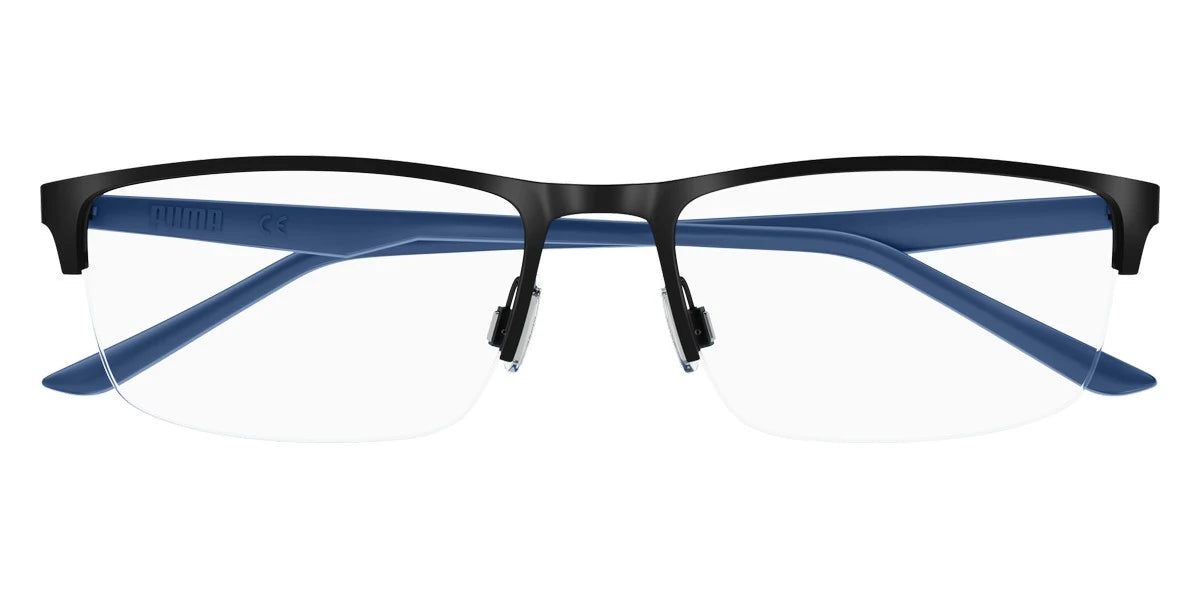 Blue (002) Eyeglasses (PU0373O 002 58) by Puma™. Size: 58-17-145, Shape: Rectangle, Material: Metal.