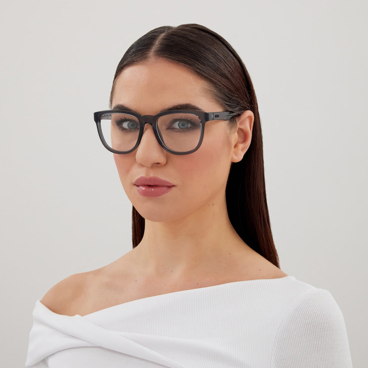 Gray (001) Eyeglasses (PU0465O 001 53) by Puma. Size: 53-19-140, Shape: Square, Material: Recycledinjection.