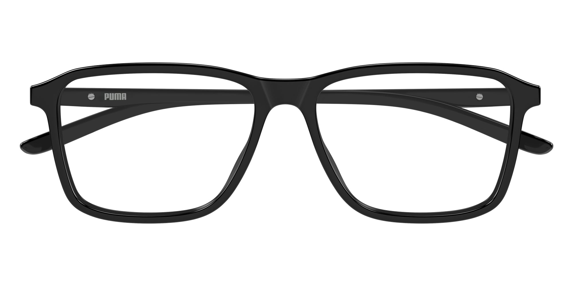 Black (001) Eyeglasses (PU0536O 001 55) by Puma. Size: 55-15-145, Shape: Square, Material: Injection.