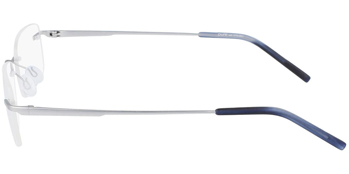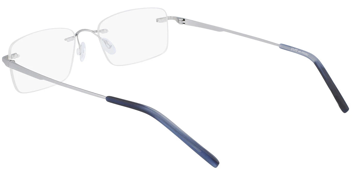 Silver (046) Eyeglasses (PUR AL REFINE 200 046 52) by Airlock™. Size: 52-18-145, Shape: Rectangle, Material: Metal.