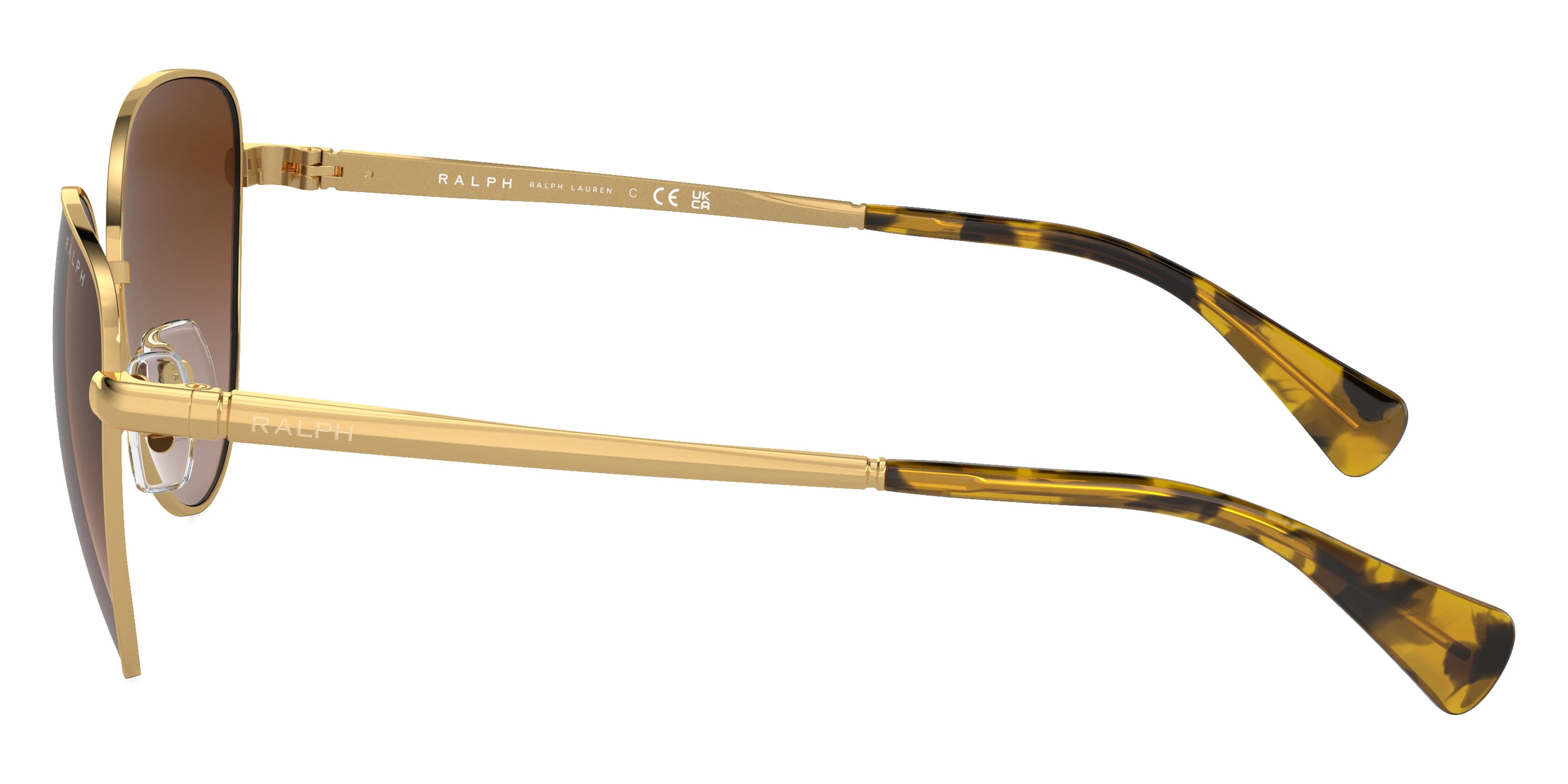 Shiny Gold (900413) Sunglasses with Gradient Brown lenses (RA4144 900413 58) by RALPH LAUREN™. Size: 58-16-145, Shape: Butterfly, Material: Metal.