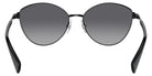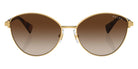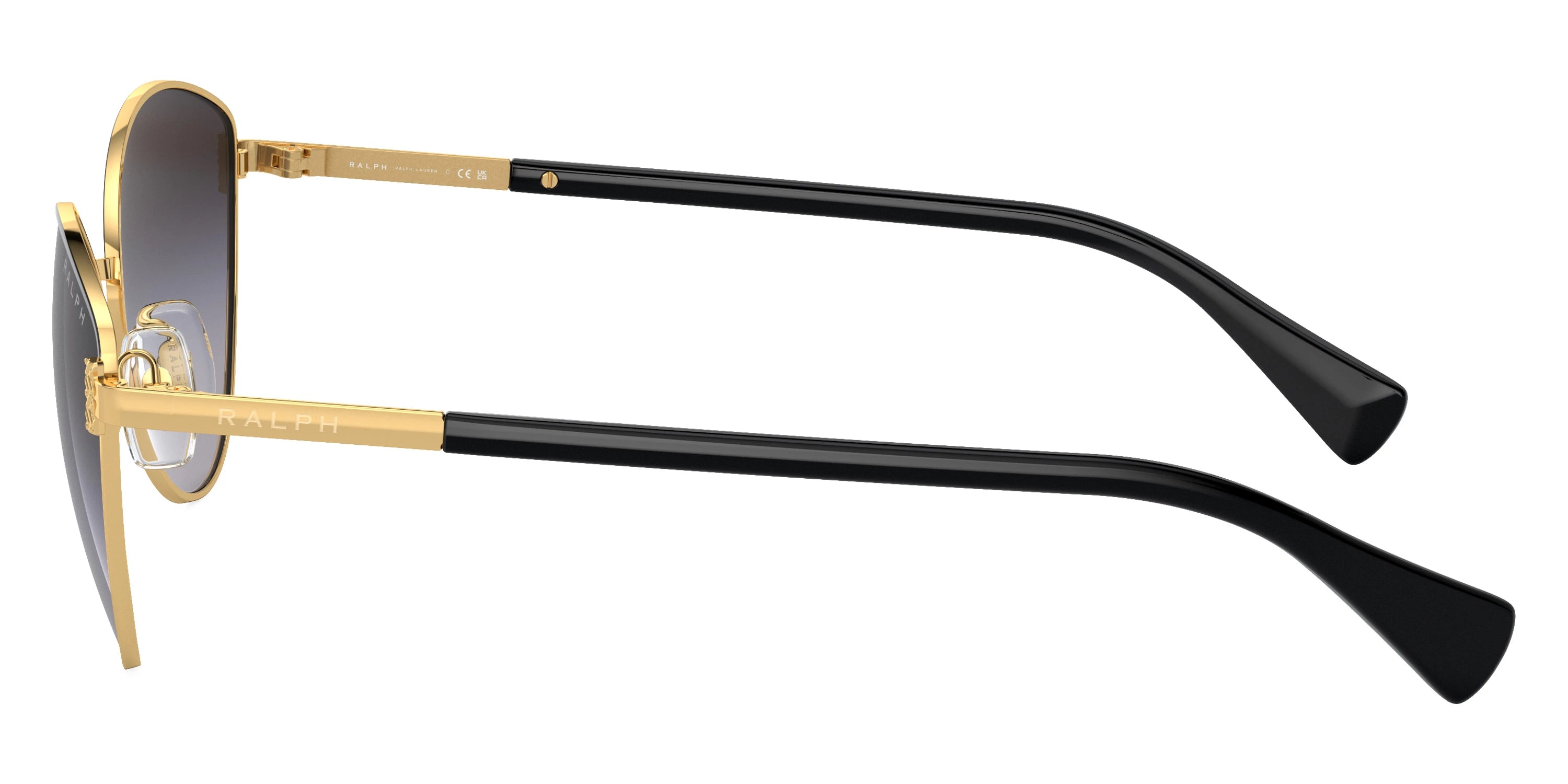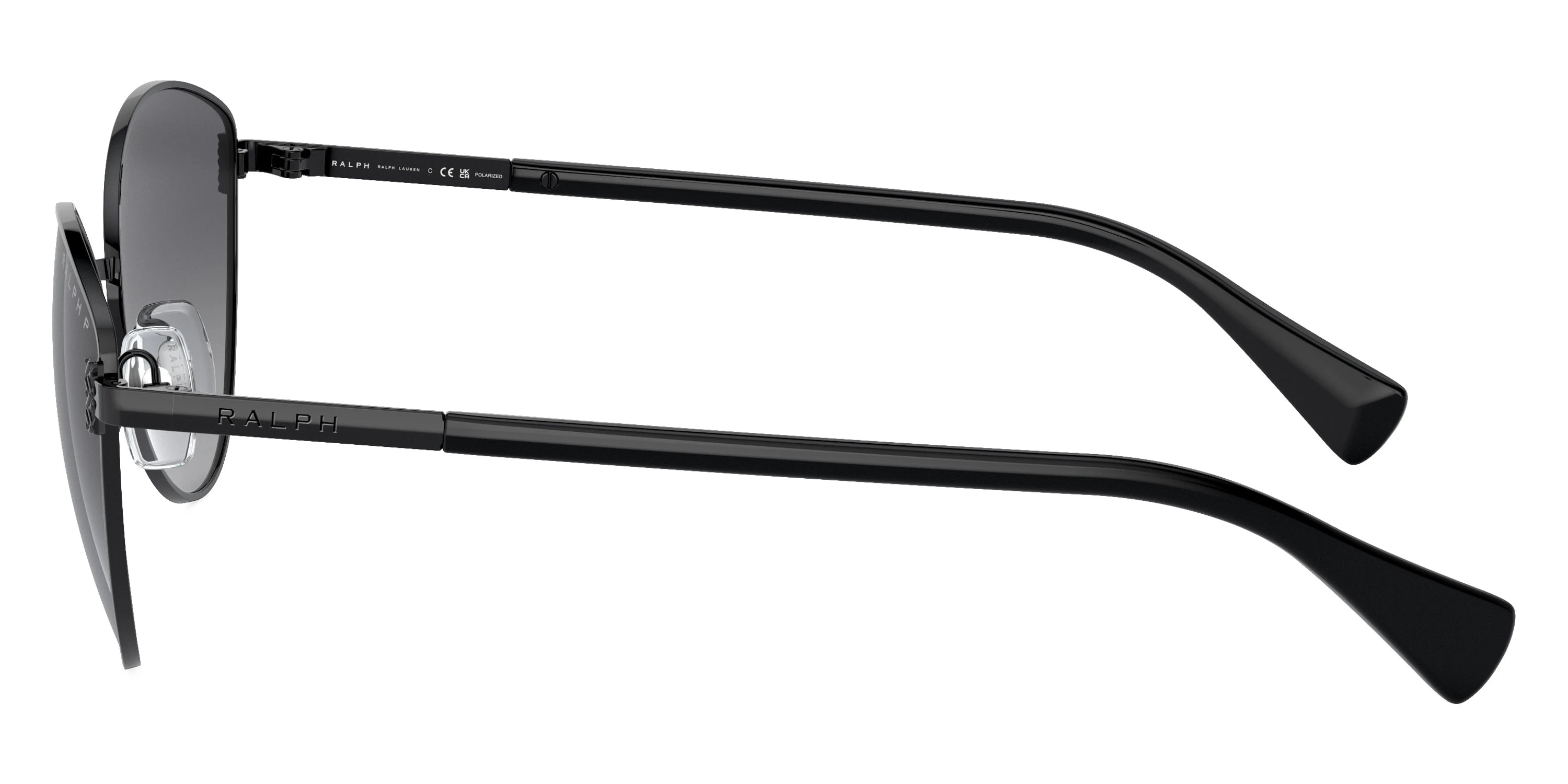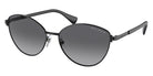 Shiny Black (9230T3) Sunglasses with Polarized Gradient Gray lenses (RA4145 9230T3 57) by RALPH LAUREN™. Size: 57-16-145, Shape: Cat-Eye, Material: Metal.