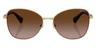 Shiny Gold/Shiny Dark Havana (900413) Sunglasses with Brown Gradient lenses (RA4147 900413 58) by RALPH LAUREN™. Size: 58-16-145, Shape: Butterfly, Material: Metal.