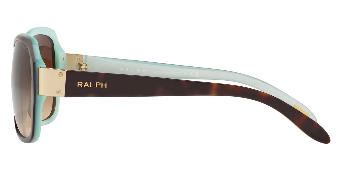 Shiny Havana on Aquamarine (601/13) Sunglasses with Gradient Brown lenses (RA5138 601/13 58) by RALPH LAUREN™. Size: 58-16-135, Shape: Square, Material: Plastic.