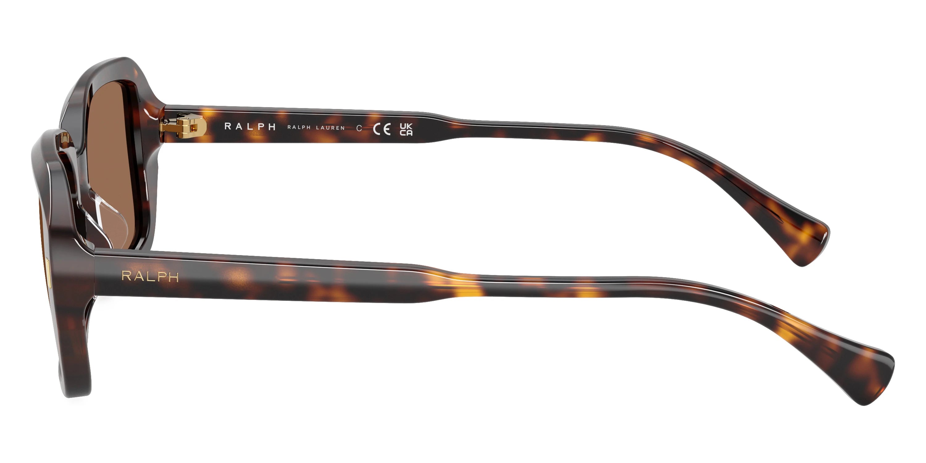 Shiny Havana (513480) Sunglasses with Dark Blue lenses (RA5325U 513480 55) by RALPH LAUREN™. Size: 55-16-145, Shape: Rectangle, Material: Acetate.