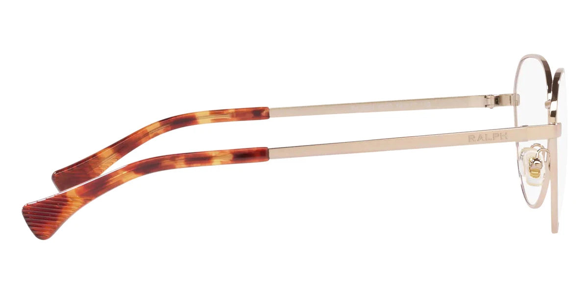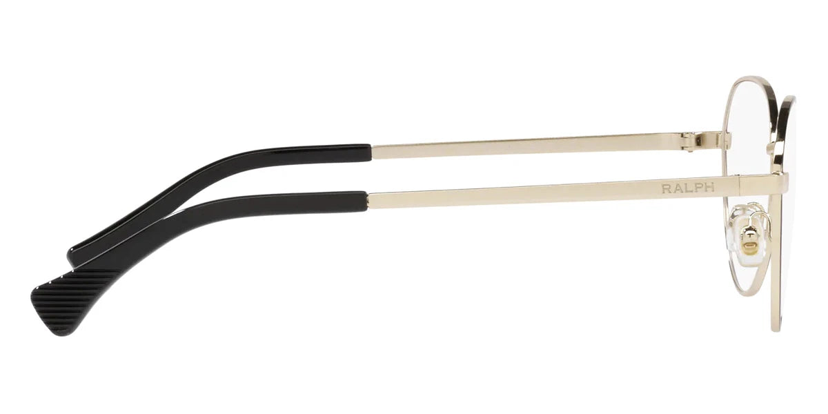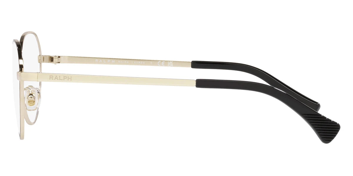 Shiny Pale Gold (9443) Eyeglasses (RA6054 9443 54) by RALPH LAUREN™. Size: 54-17-145, Shape: Irregular, Material: Metal.