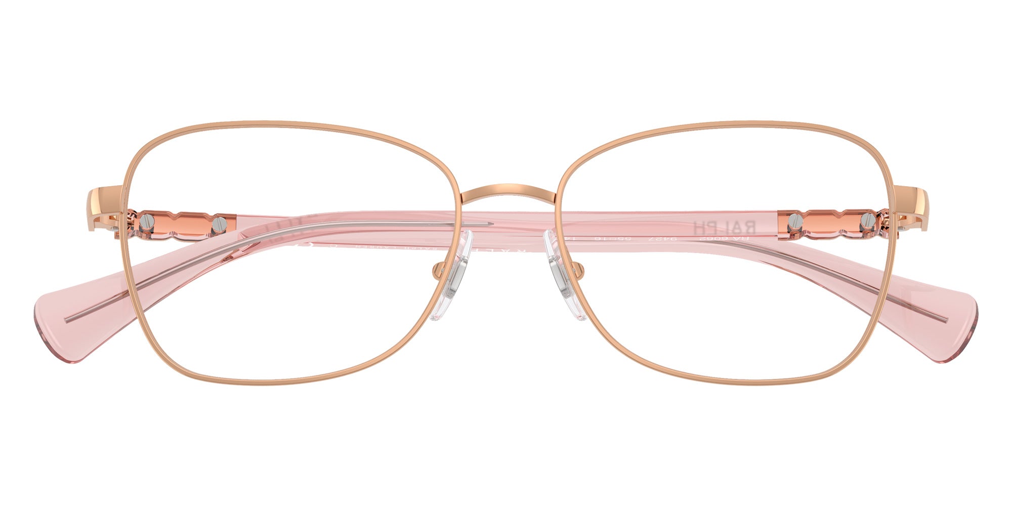 Shiny Rose Gold (9427) Eyeglasses (RA6062 9427 53) by RALPH LAUREN. Size: 53-16-145, Shape: Square, Material: Metal and Injected.