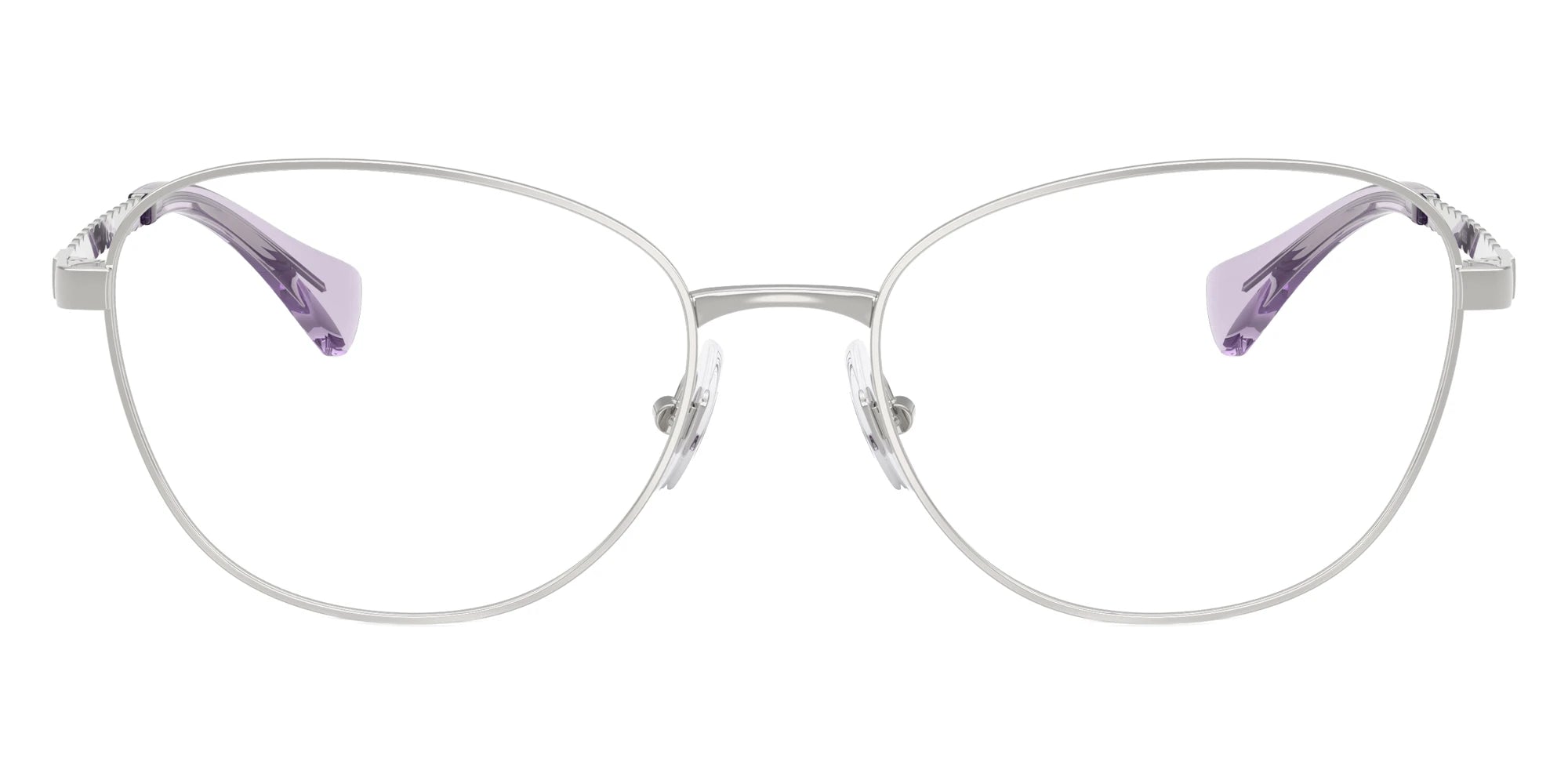 Shiny Silver (9001) Eyeglasses (RA6063 9001 54) by RALPH LAUREN™. Size: 54-17-145, Shape: Round, Material: Metal.
