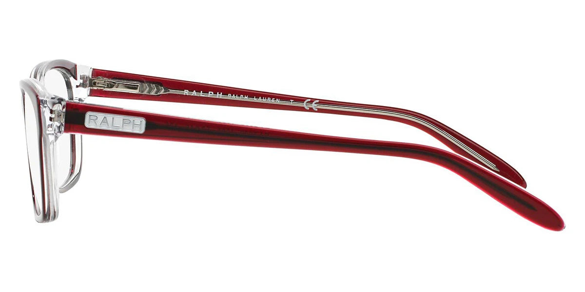 Shiny Transparent Red on Crystal (1081) Eyeglasses (RA7039 1081 51) by RALPH LAUREN™. Size: 51-16-135, Shape: Square, Material: Plastic.