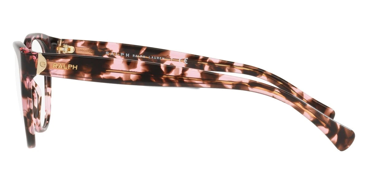 Shiny Pink Tortoise (1693) Eyeglasses (RA7103 1693 52) by RALPH LAUREN™. Size: 52-17-140, Shape: Butterfly, Material: Plastic.