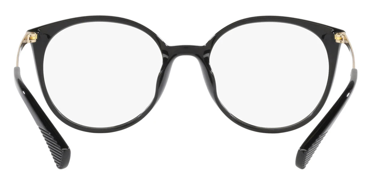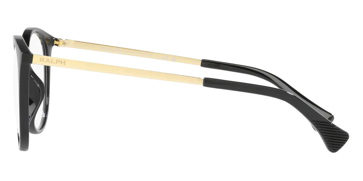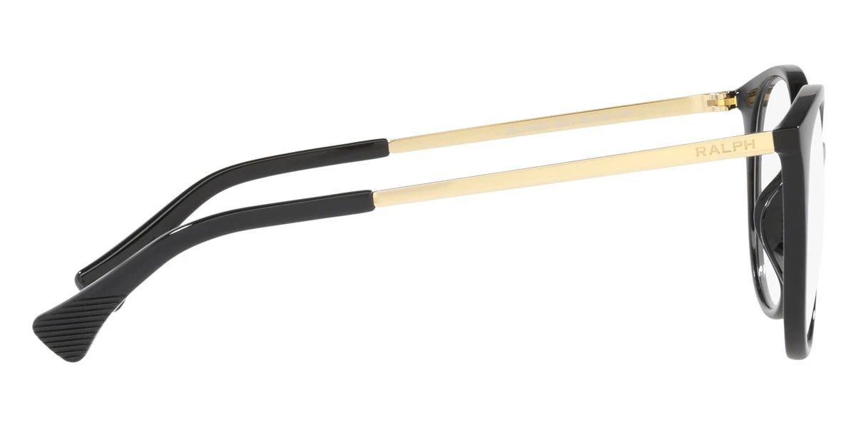 Shiny Black (5001) Eyeglasses (RA7145U 5001 53) by RALPH LAUREN™. Size: 53-18-145, Shape: Round, Material: Plastic and Metal.