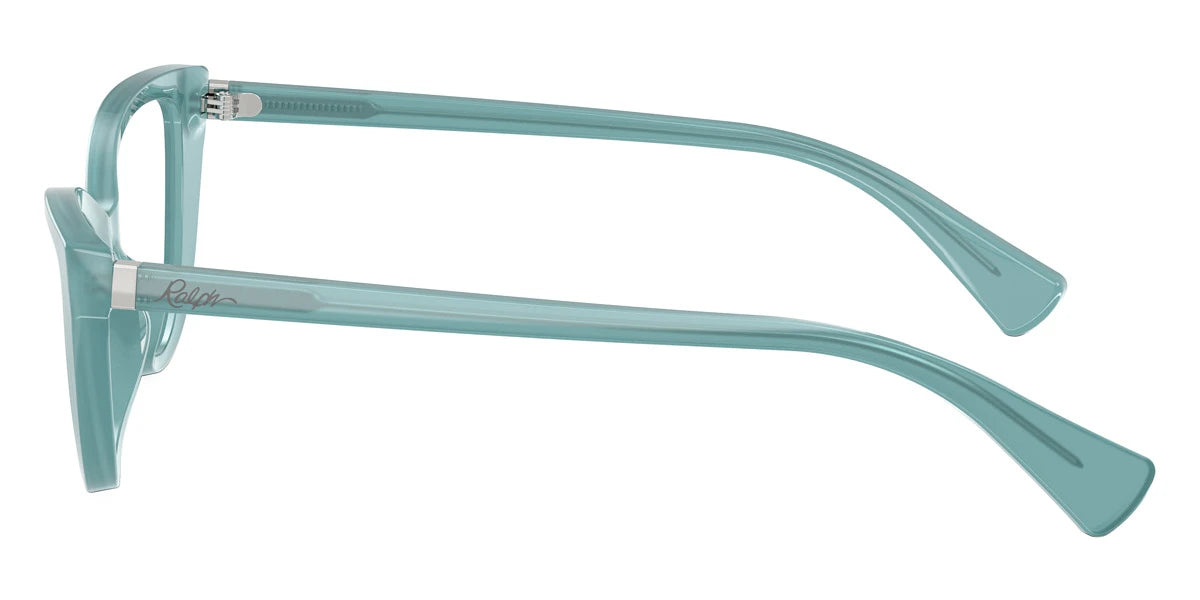 Shiny Milky Blue (6240) Eyeglasses (RA7181U 6240 52) by RALPH LAUREN™. Size: 52-16-145, Shape: Cat-Eye, Material: Acetate.