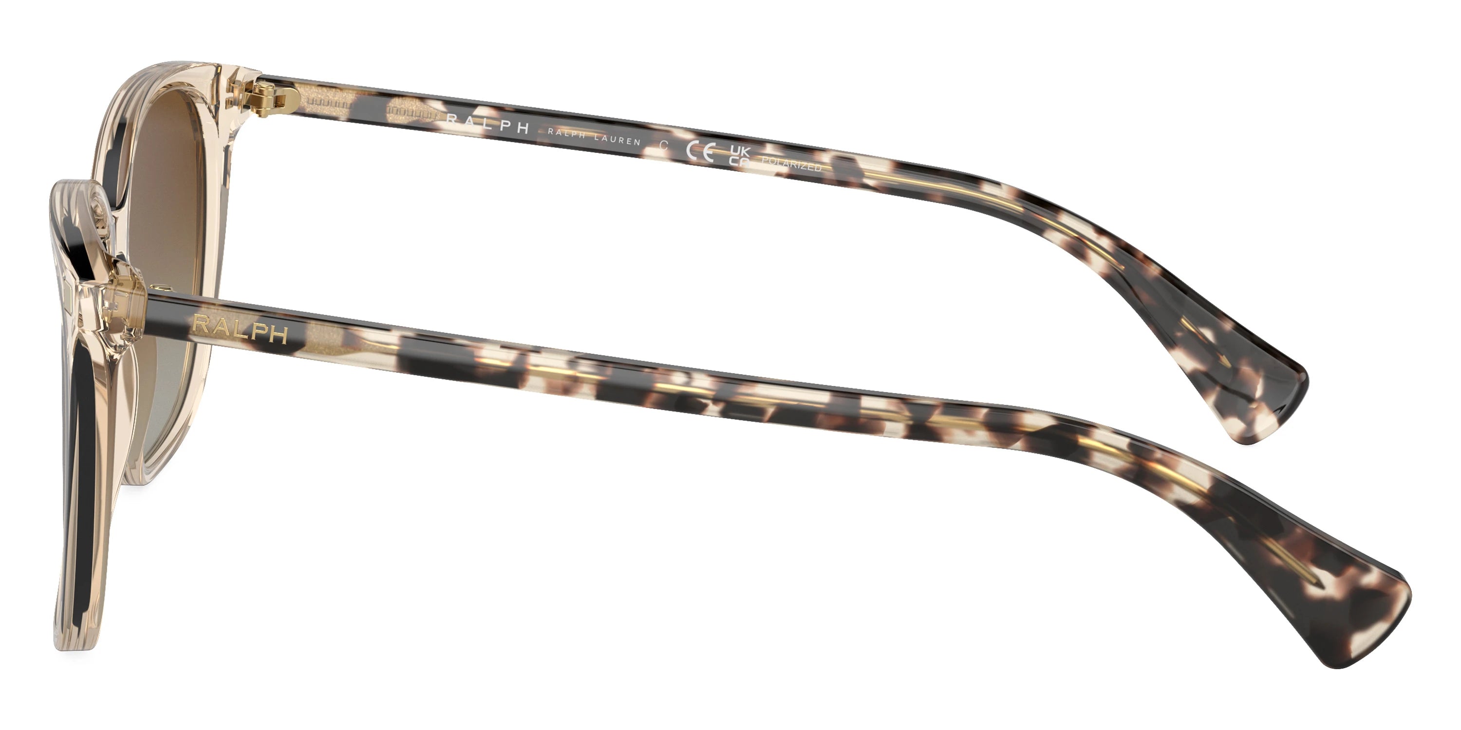 Shiny Transparent Brown/Shiny Havana Beige (6072T5) Sunglasses with Polarized Gradient Brown lenses (VVCV RA5293 6072T5 56) by RALPH LAUREN™. Size: 56-16-145, Shape: Square, Material: Acetate.