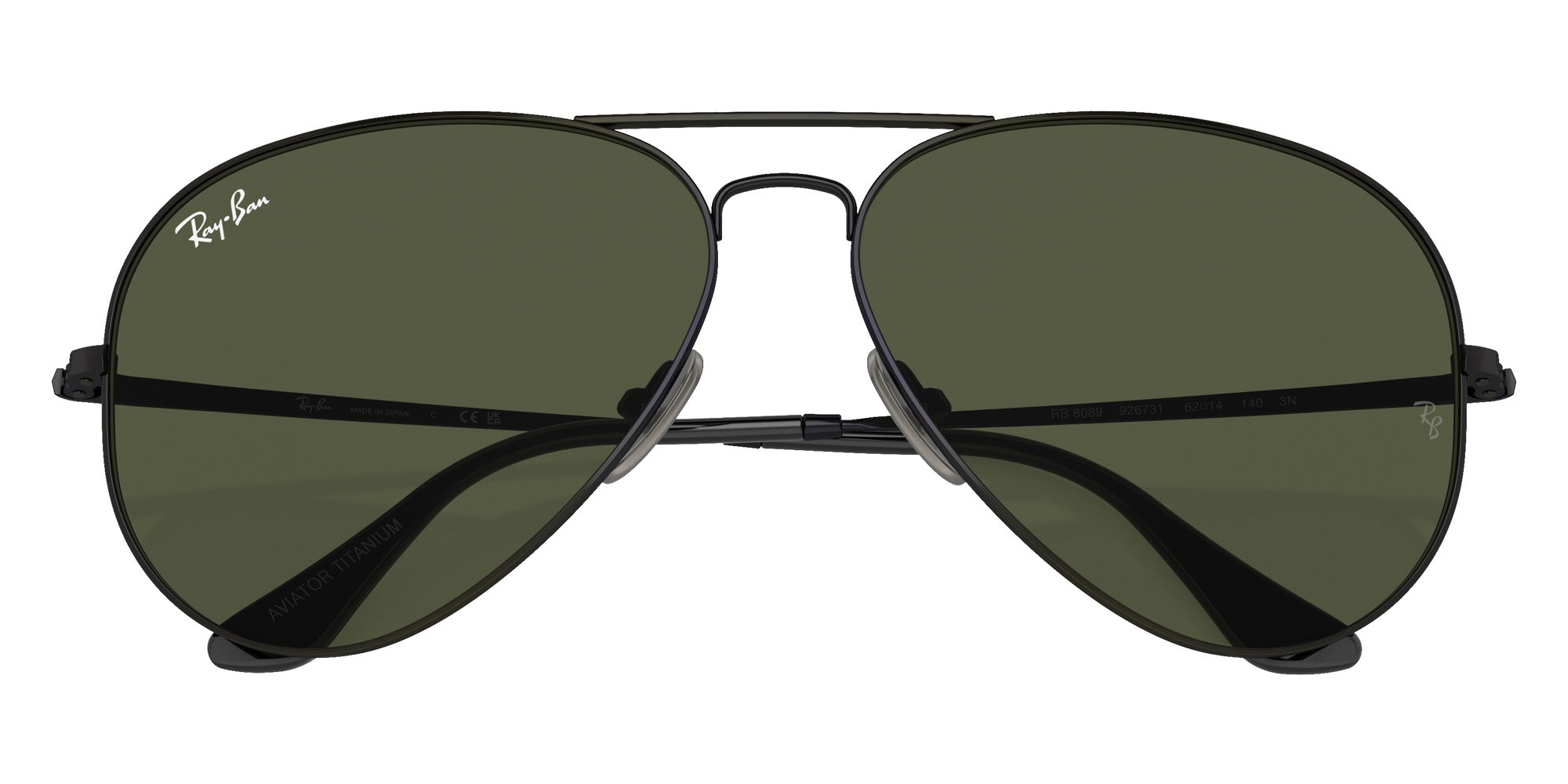 Arista Gold (926551) Sunglasses (RB8089 Aviator Titanium 926551 62) by Ray-Ban. Size: 62-14-140, Shape: Aviator, Material: Titanium.