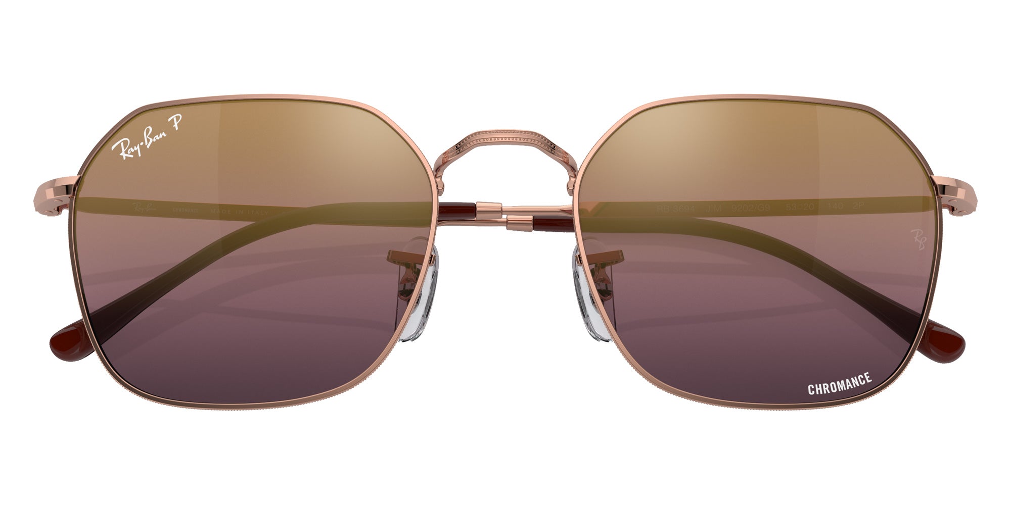 Rose Gold (9202G9) Sunglasses (RB3694 Jim 9202G9 53) by Ray-Ban. Size: 53-20-145, Shape: Irregular, Material: Metal.