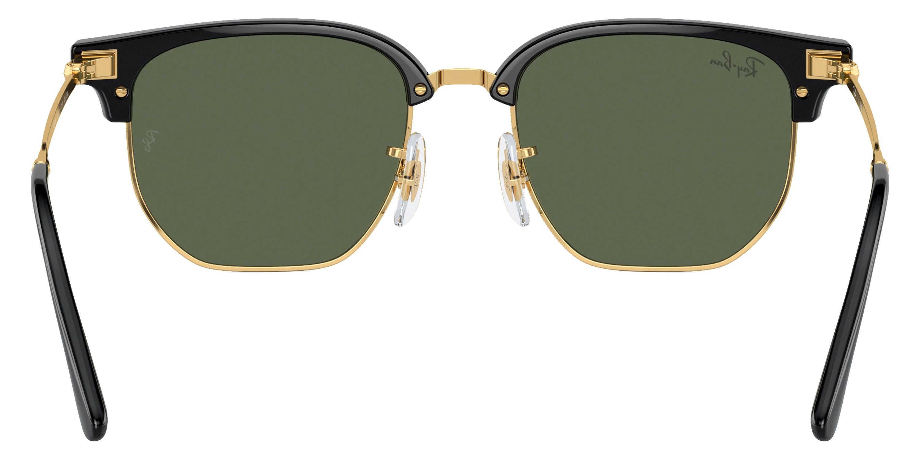 Black on Gold (100/71) Sunglasses with Dark Green lenses (Junior New Clubmaster RJ9116S 100/71 47) by Ray-Ban®. Size: 47-17-125, Shape: Irregular, Material: Injected and Metal.