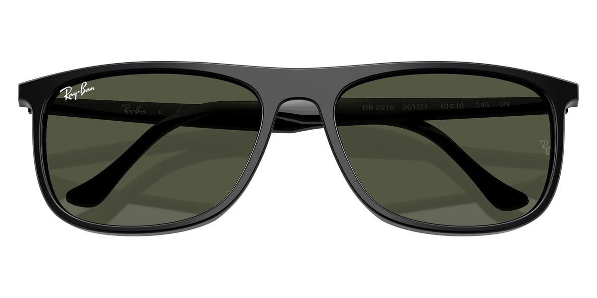 Black (901/B1) Sunglasses with Dark Gray lenses (RB2216 901/B1 58) by Ray-Ban®. Size: 58-18-145, Shape: Rectangle, Material: Acetate.