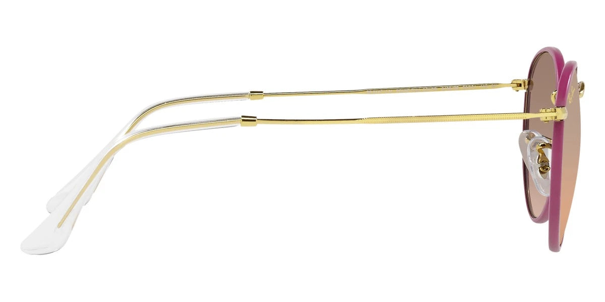 Violet On Legend Gold (91963E) Sunglasses with Pink Mirrored Gradient Gray lenses (RB3447JM 91963E 50) by Ray-Ban®. Size: 50-21-145, Shape: Wayfarer, Material: Metal.