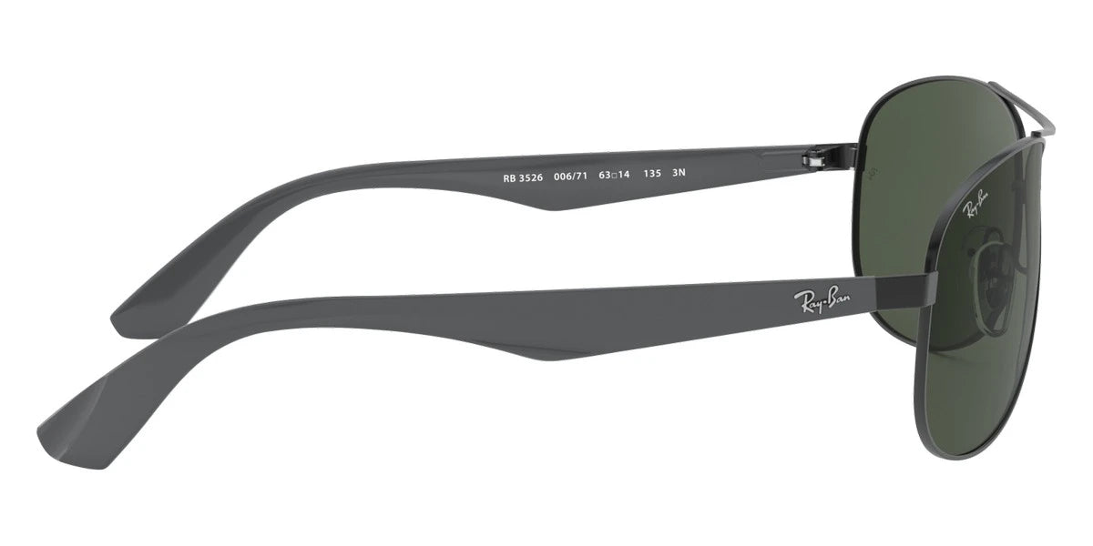 Matte Black (006/71) Sunglasses with Dark Green lenses (RB3526 006/71 63) by Ray-Ban®. Size: 63-14-135, Shape: Aviator, Material: Metal and Plastic.