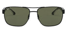 Black (002/9A) Sunglasses with Green Polarized lenses (RB3530 002/9A 58) by Ray-Ban®. Size: 58-17-140, Shape: Square, Material: Metal and Plastic.