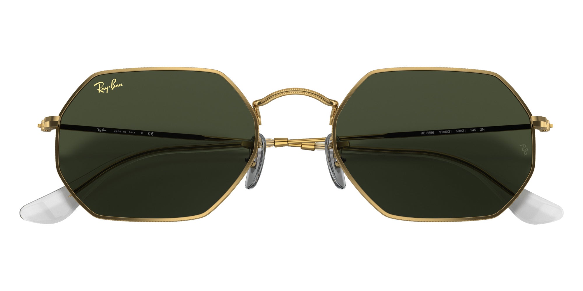 Gold (919631) Sunglasses (RB3556 Octagonal Legend Gold 919631 53) by Ray-Ban. Size: 53-21-145, Shape: Irregular, Material: Metal.