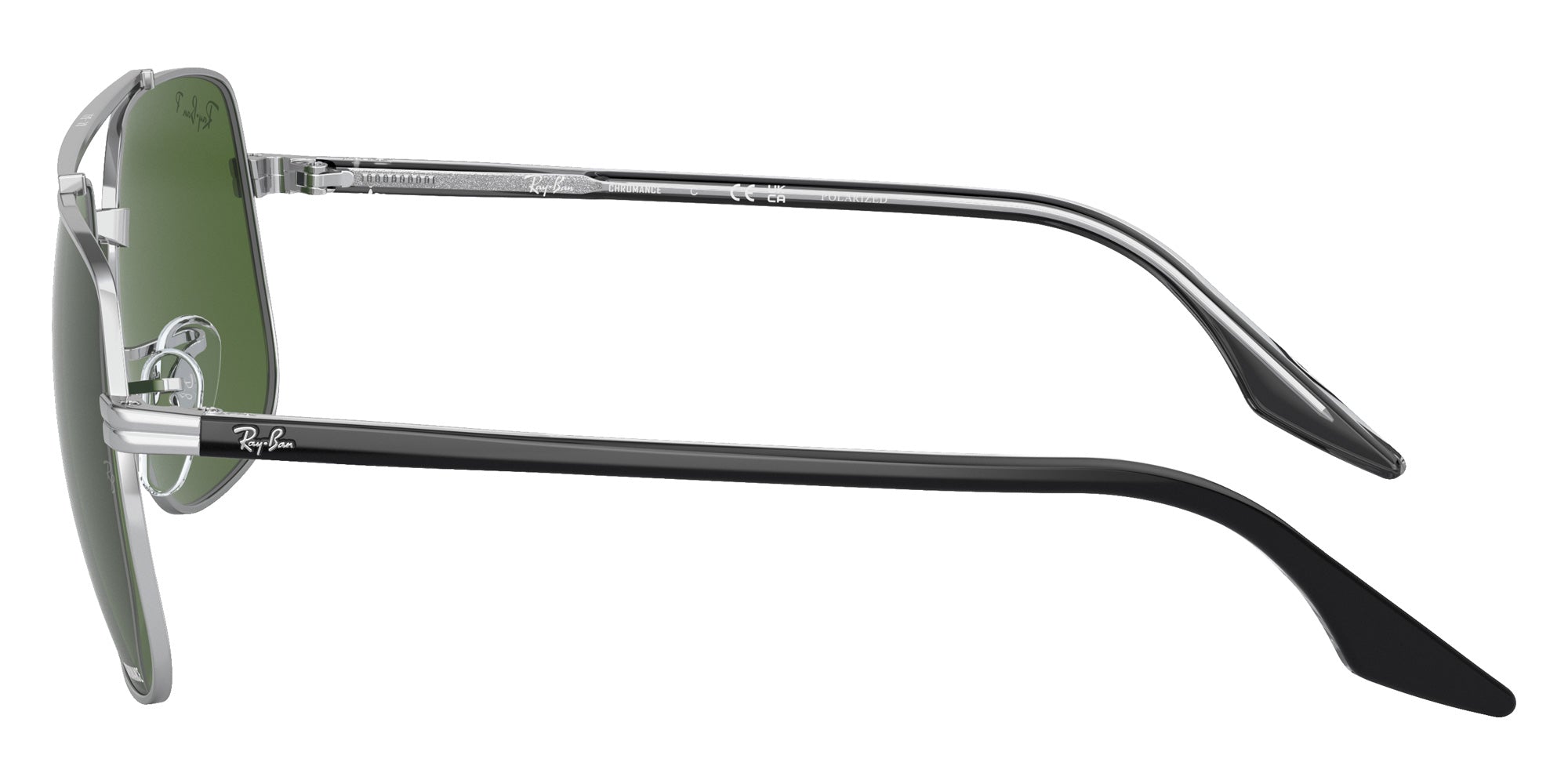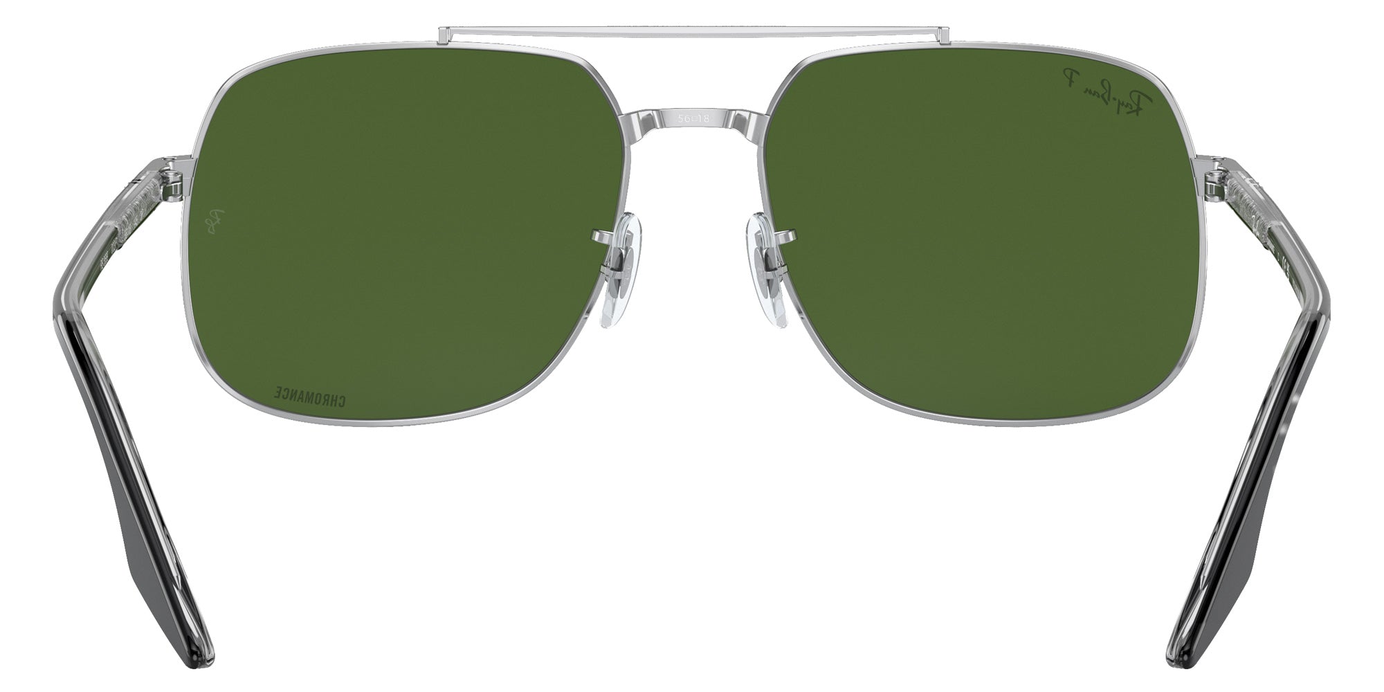 Silver (003/P1) Sunglasses with Dark Green Polarized lenses (RB3699 003/P1 59) by Ray-Ban®. Size: 59-18-145, Shape: Square, Material: Plastic and Metal.