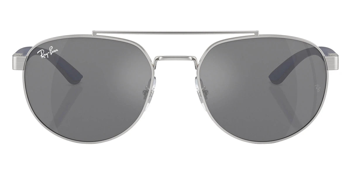 Silver/Blue (003/6G) Sunglasses with Gray Mirrored lenses (RB3736 003/6G 56) by Ray-Ban®. Size: 56-19-145, Shape: Irregular, Material: Metal.