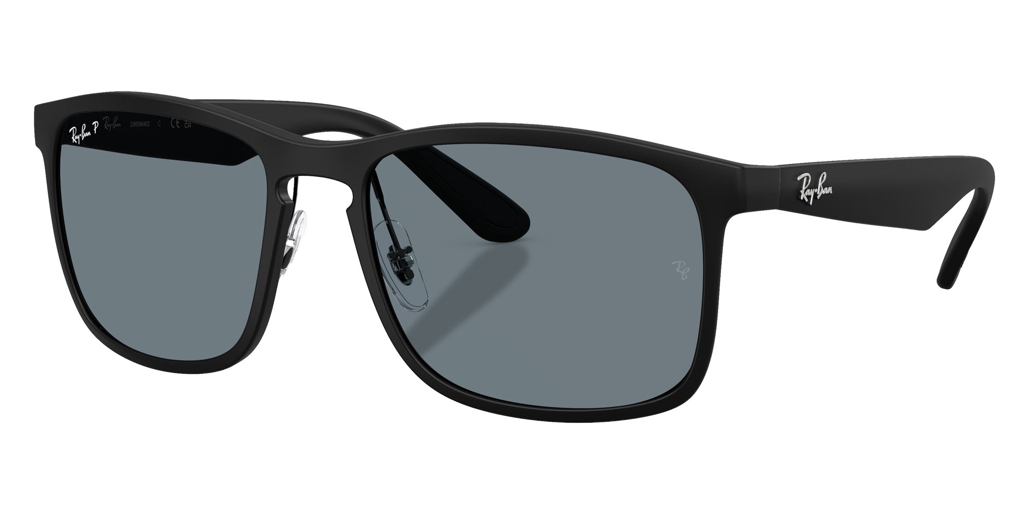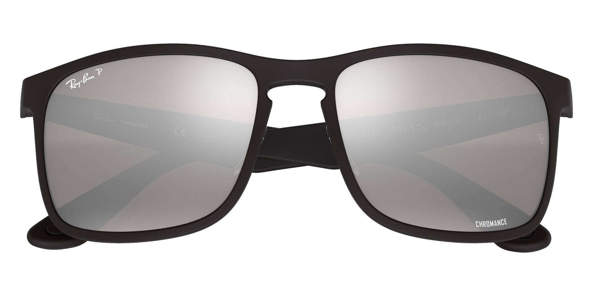 Matte Black (601S87) Sunglasses (RB4264CH Chromance 601S87 58) by Ray-Ban. Size: 58-18-145, Shape: Square, Material: Nylon.