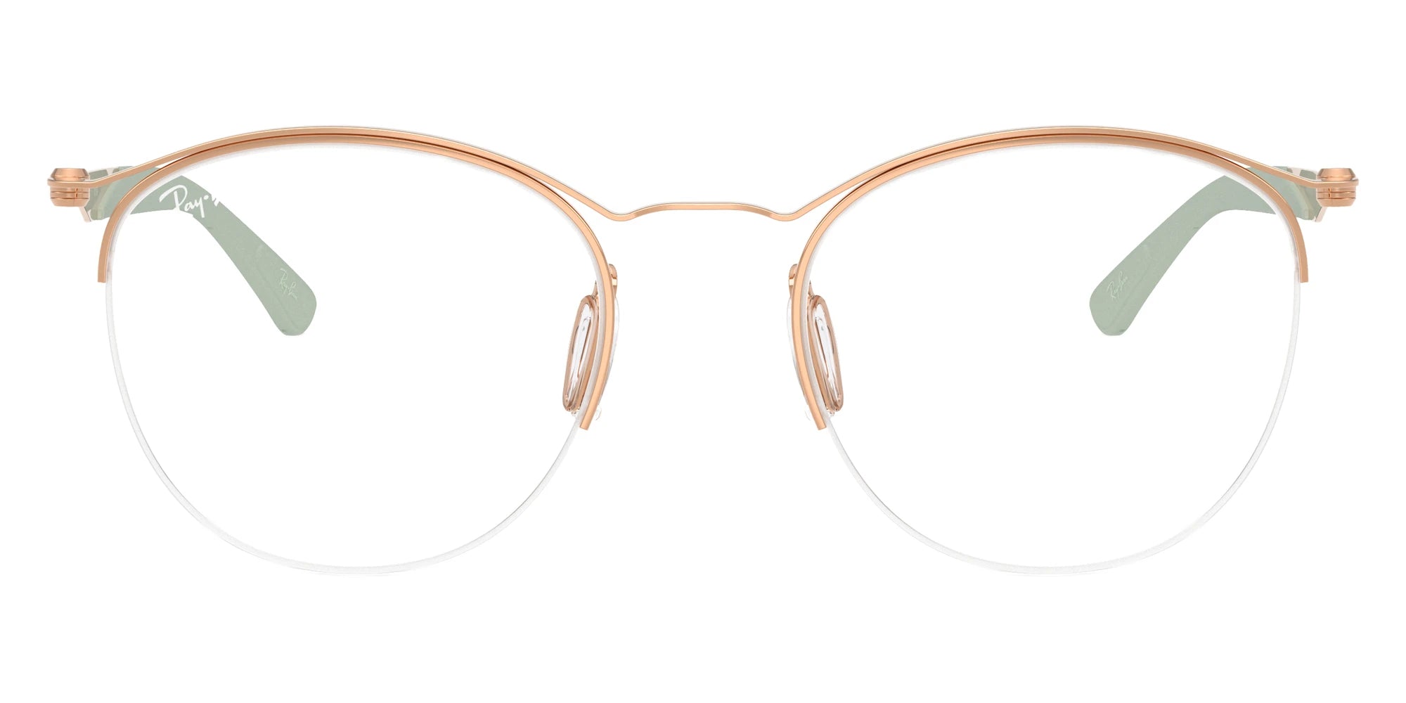 Rose Gold (3217) Eyeglasses (RB7553 3217 52) by Ray-Ban™. Size: 52-20-140, Shape: Round, Material: Metal.