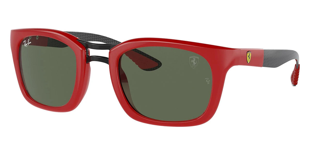 Red/Dark Carbon (F66371) Sunglasses with Dark Green lenses (RB8362M F66371 53) by Ray-Ban®. Size: 53-25-145, Shape: Square, Material: Injected.